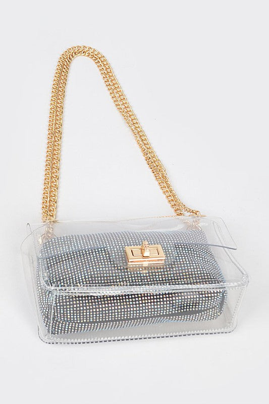 2 In 1 Rhinestone Pouch Clear Shoulder Bag