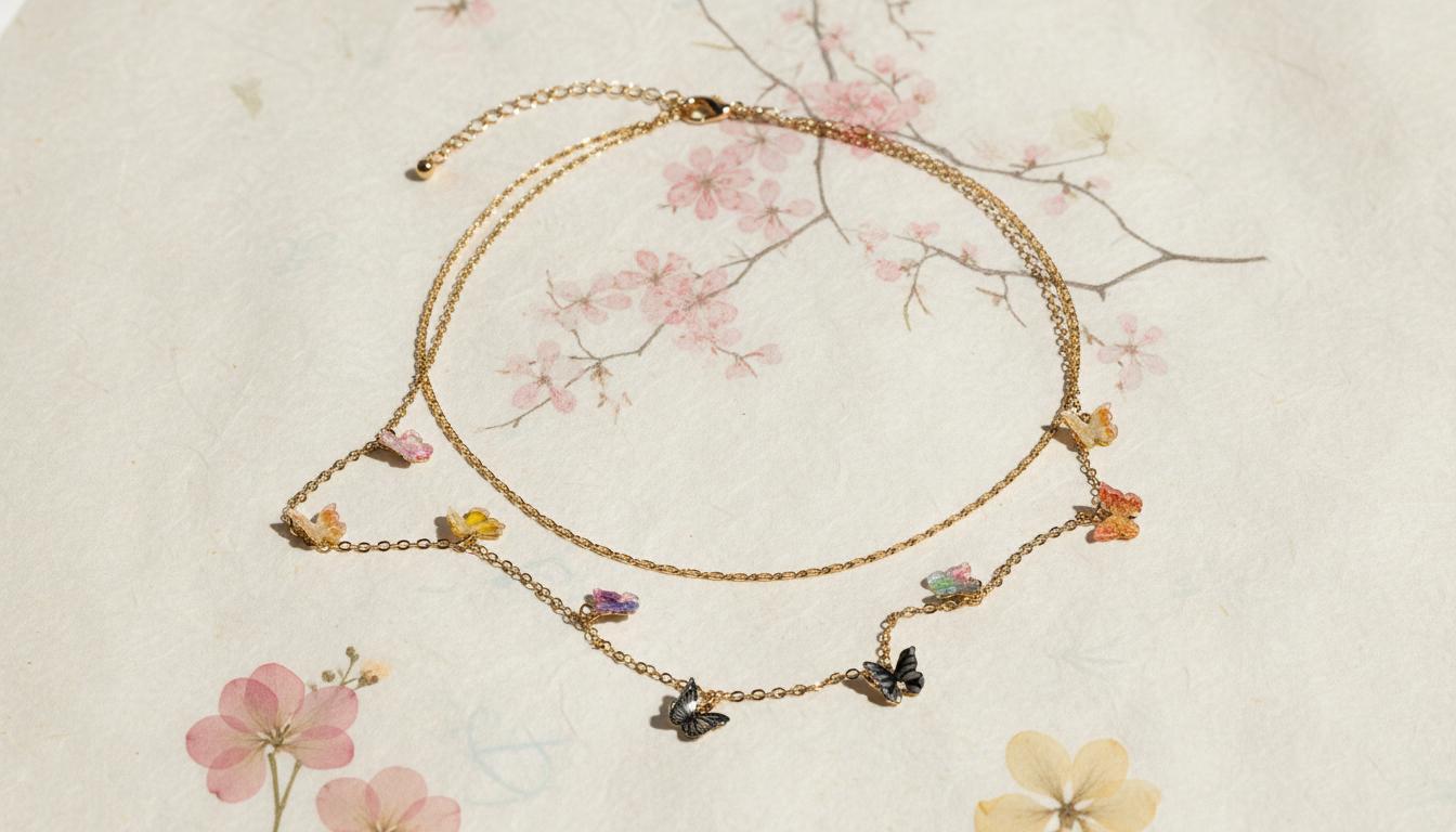 Elevate your accessory collection with this striking 2-row colorful butterfly necklace. Featuring vibrant, multi-hued butterfly charms arranged across two delicate strands, this piece delivers eye-catching appeal with sophisticated layering. The intricate butterfly design symbolizes transformation and grace, making it an ideal choice for those who appreciate nature-inspired jewelry. Perfect for adding dimension to everyday outfits or creating a bold statement at special occasions. Durable construction ensures lasting wear and beauty.