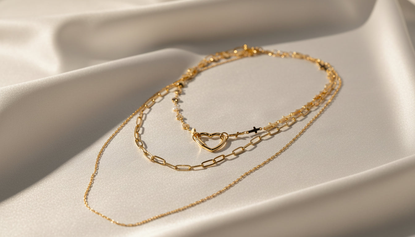 Add some love and shine to your jewelry collection with our 3 Row Gold Layer Heart Necklace. Featuring three delicate layers of gold chains and a charming heart pendant, this necklace will make a sweet and stylish addition to any outfit. Fall in love with this unique piece today!