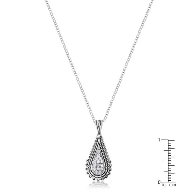 .37 Ct Tear Drop Rhodium Pendant Necklace with CZ