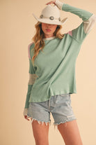 Aemi + Co Raw Seam Color Block Round Neck Knit Top