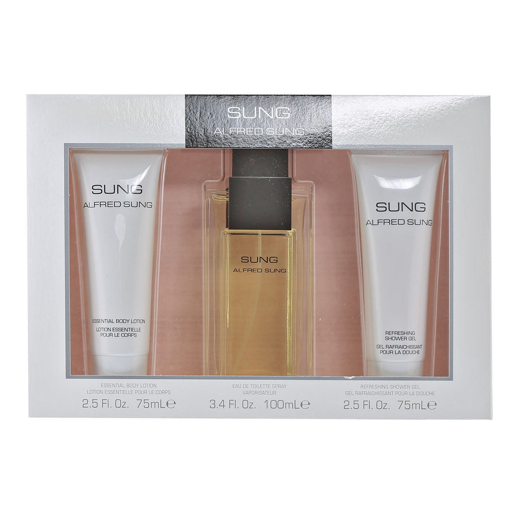 ALFRED SUNG FOR WOMEN 3.3 OZ EDT SPRAY/2.5 OZ BODY LOTION/ 2.5 OZ SHOWER GEL
