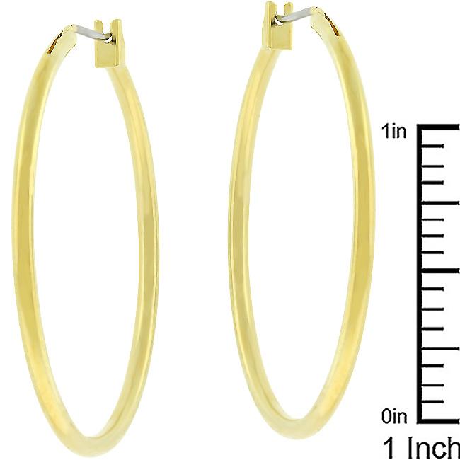 Fashioned in a basic gold tone hue these large hoop earrings are easily alluring. Our gold tone finish is heavily coated to achieve its beautiful golden color.