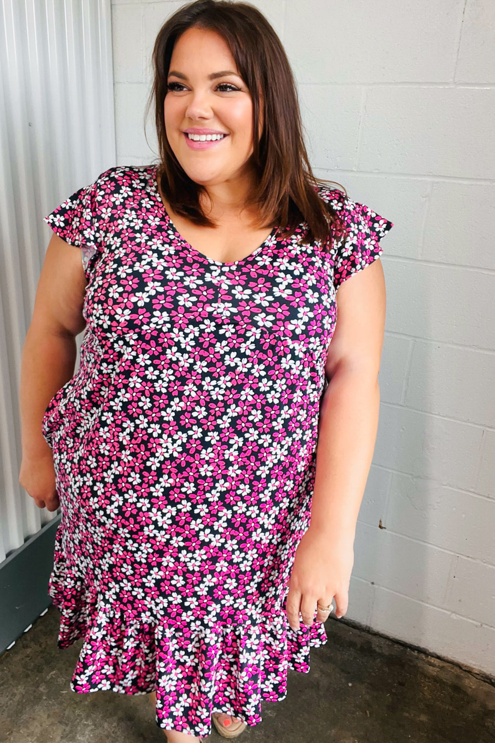 Slip on this adorable floral print V neck baby doll dress for any occasion. With side pockets, flutter sleeves and buttery smooth fabric, this dress is casual chic and comfy.