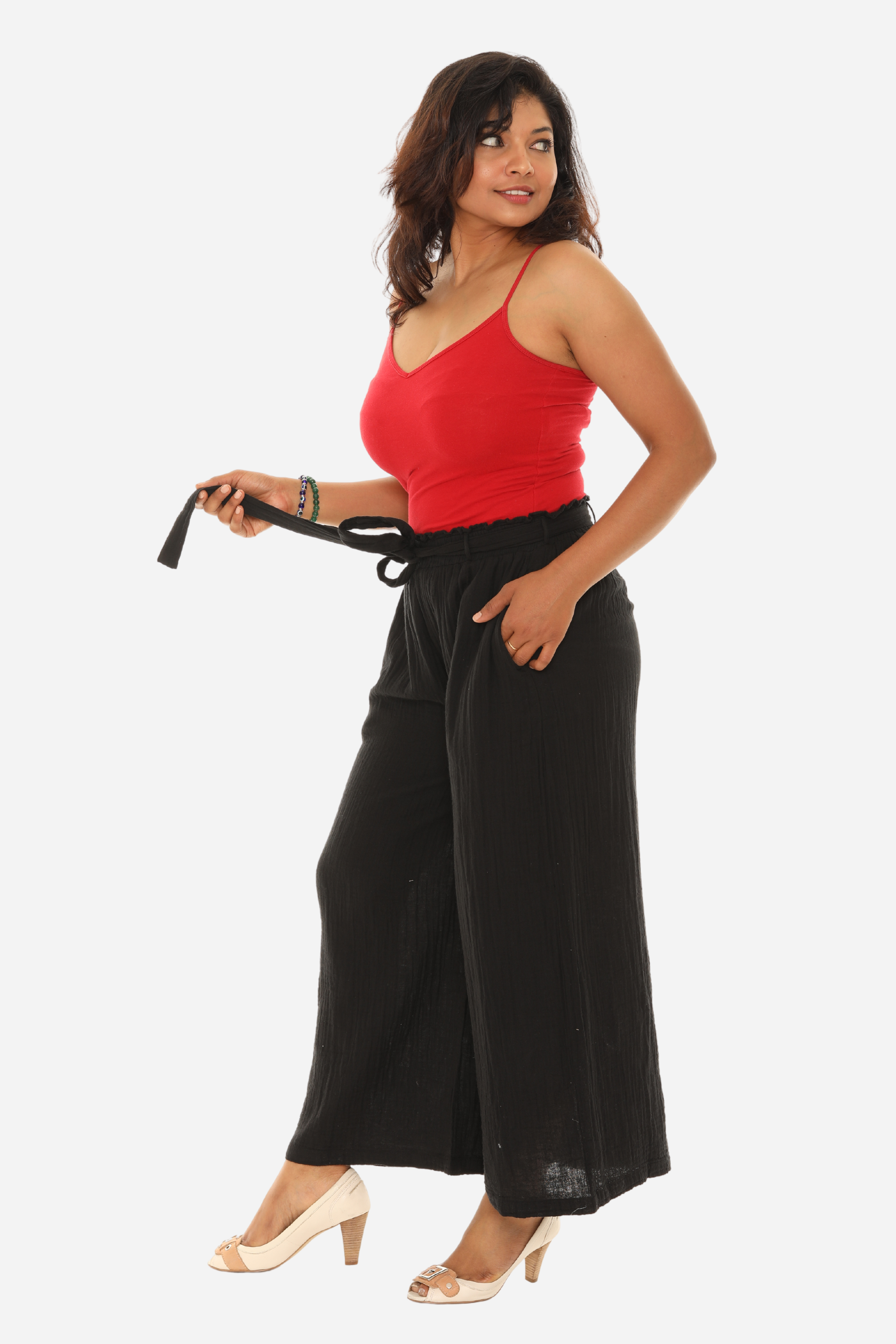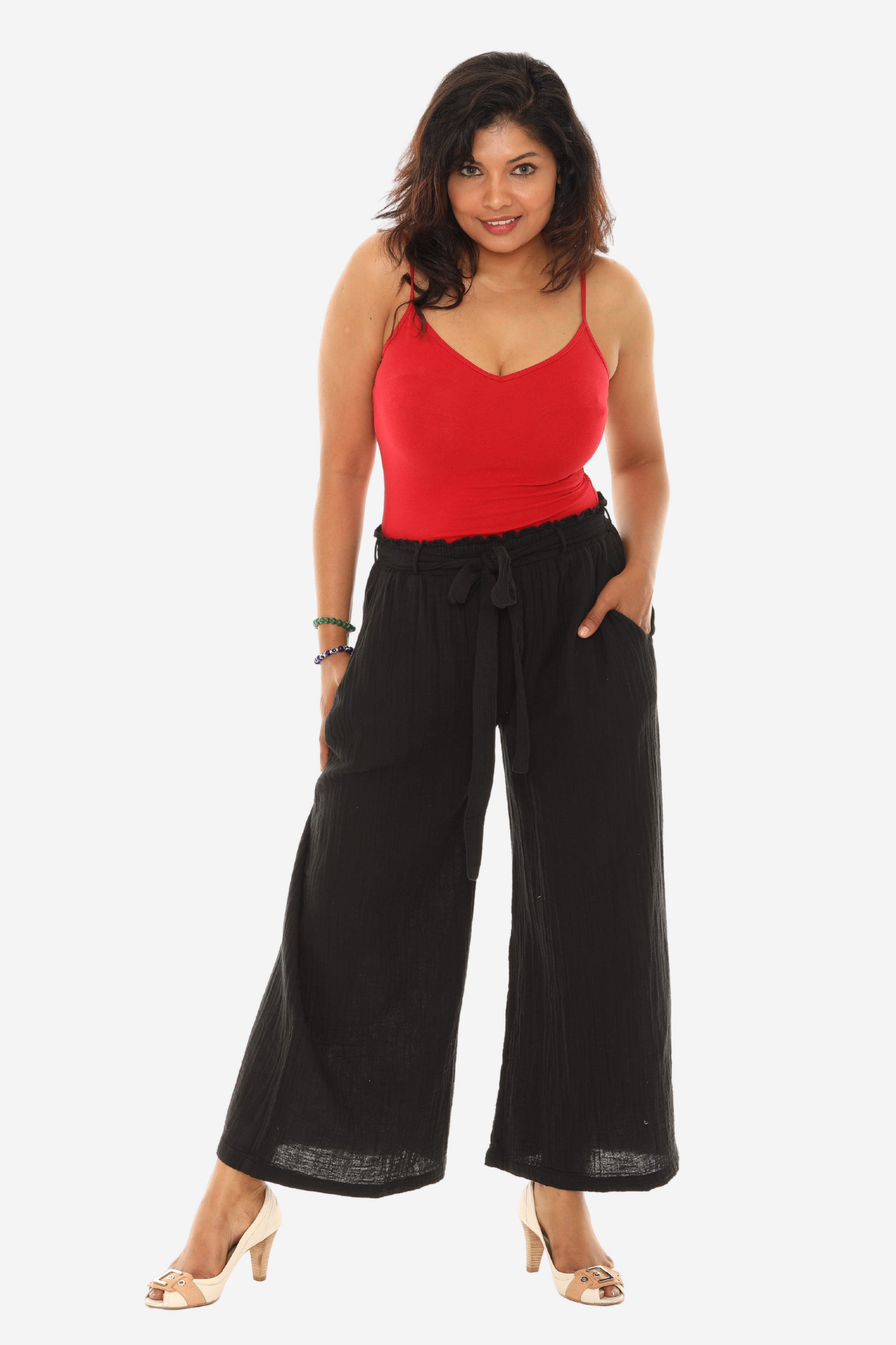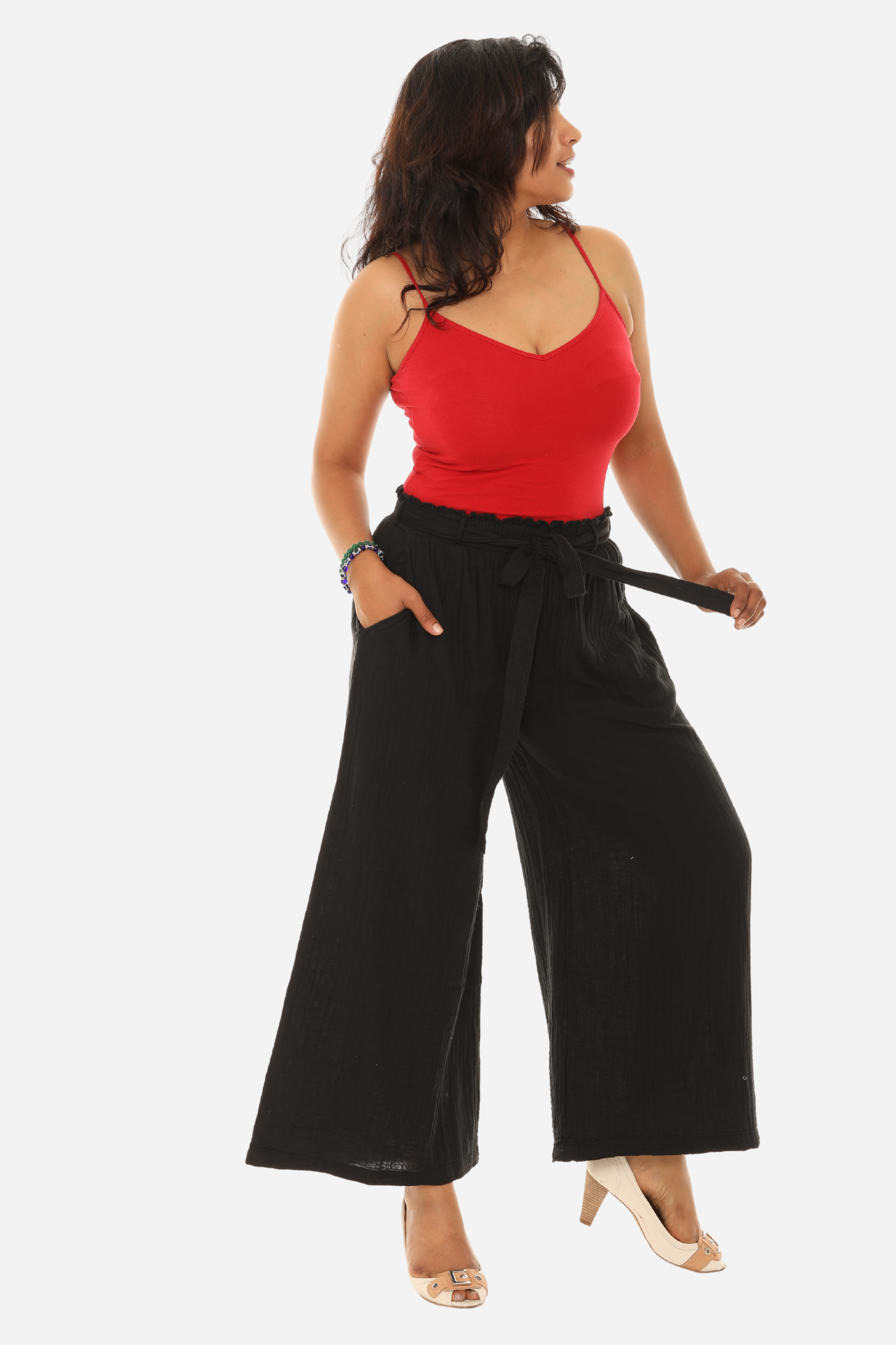 Our pants are designed to be comfortable and stylish, and they feature a classic tie-front closure, pockets, and a wide-leg fit. We hope you find something you love!