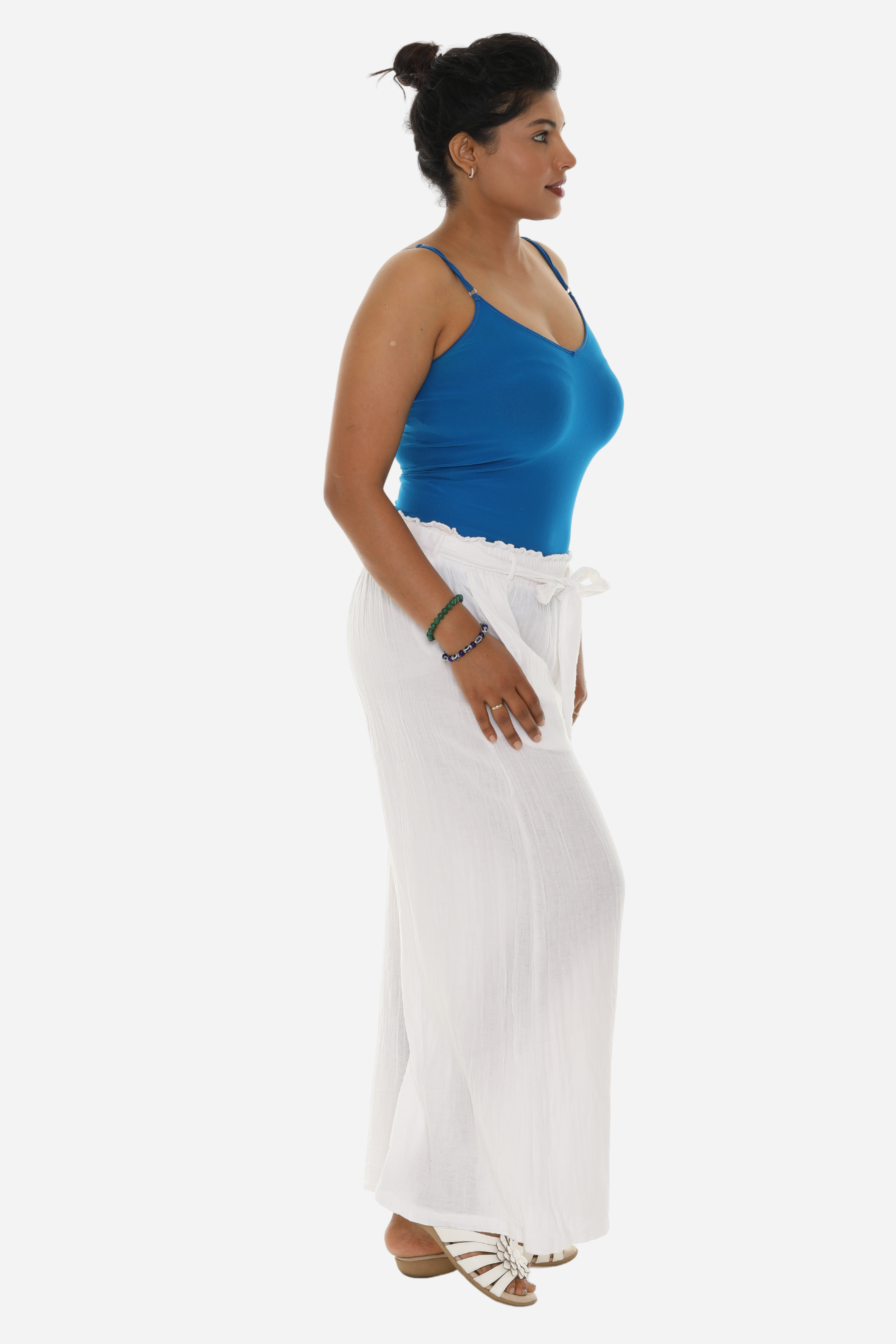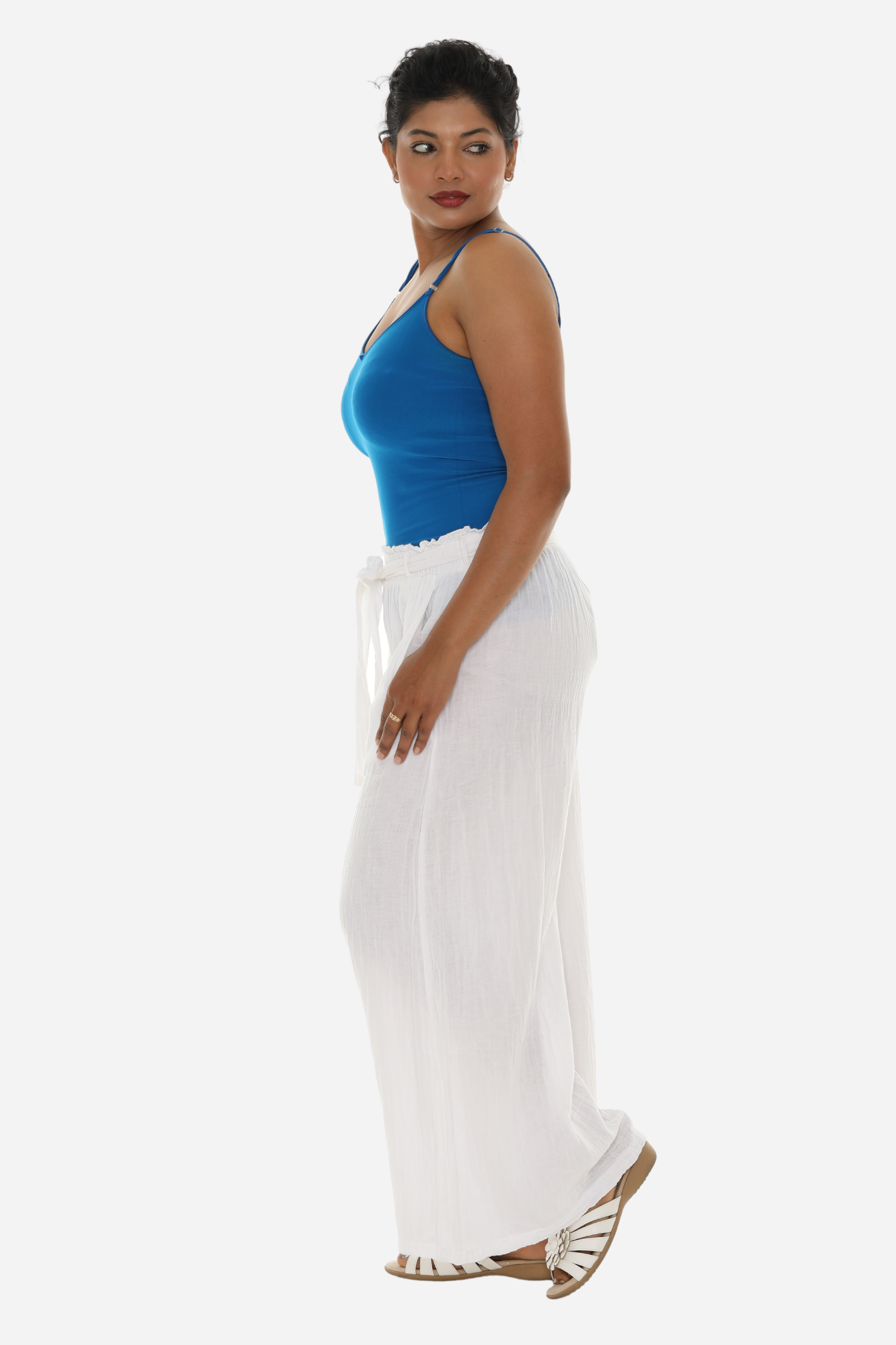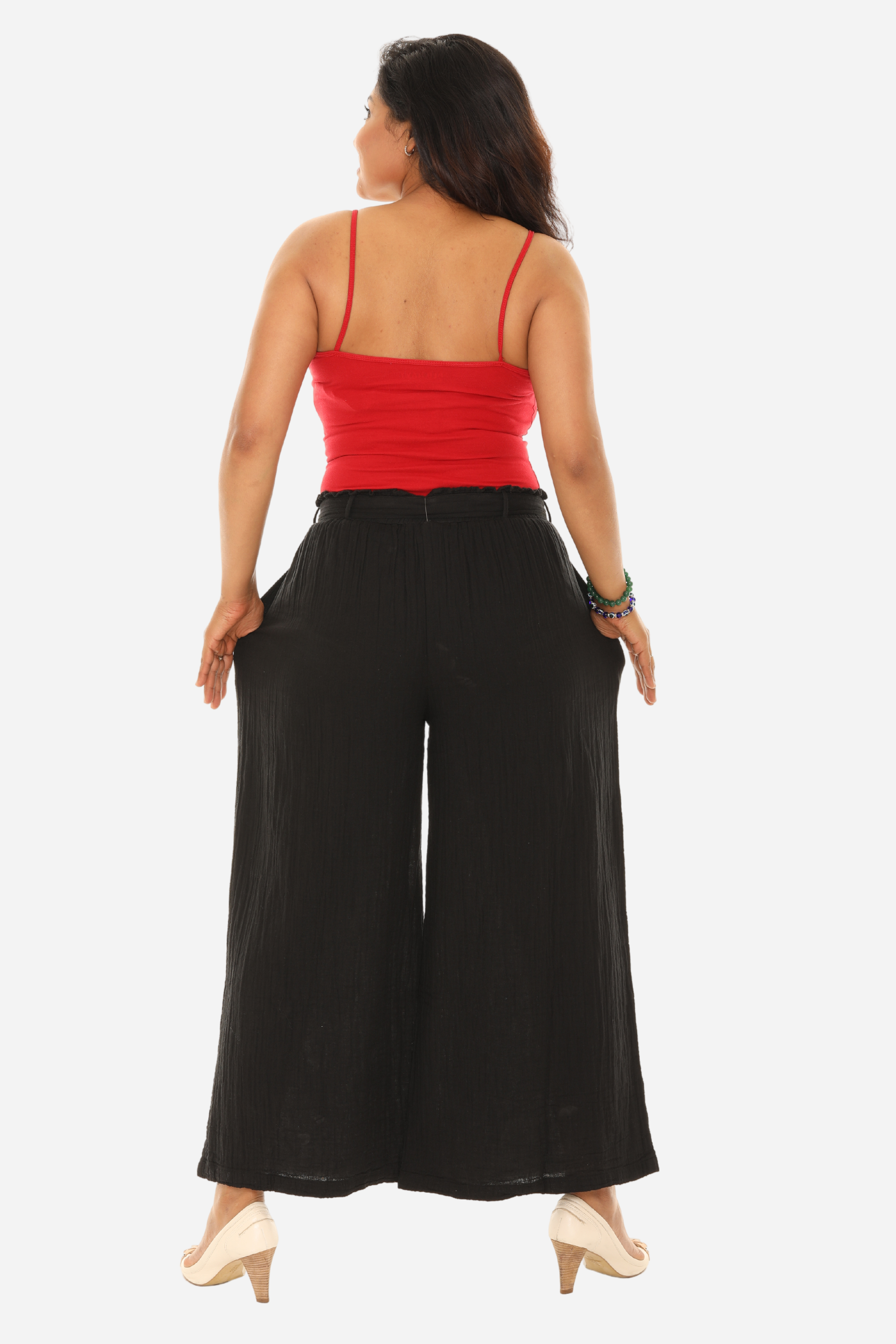 Our pants are designed to be comfortable and stylish, and they feature a classic tie-front closure, pockets, and a wide-leg fit. We hope you find something you love!