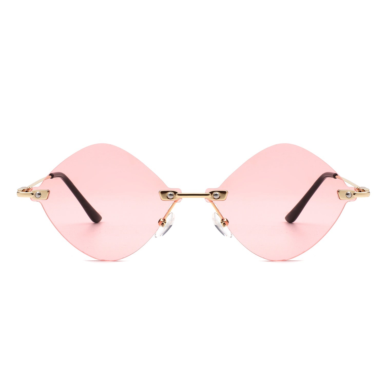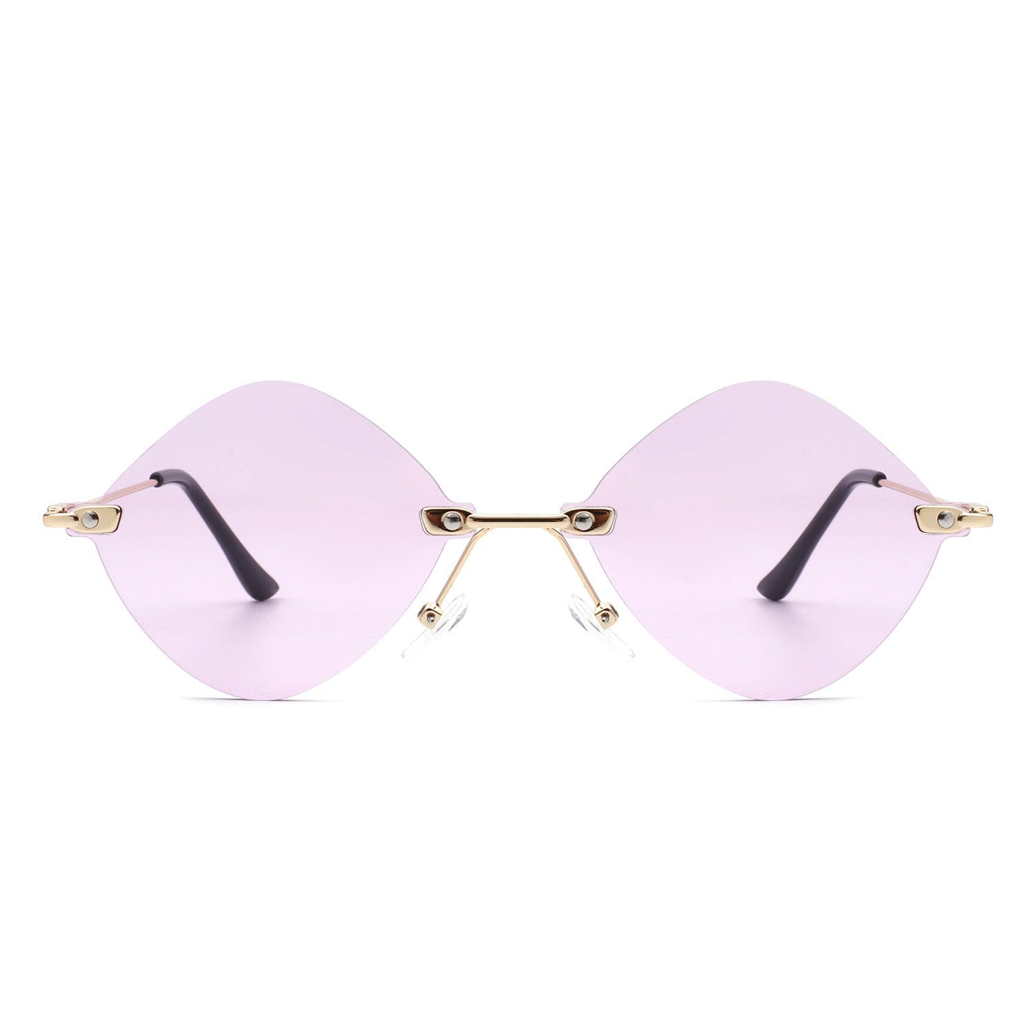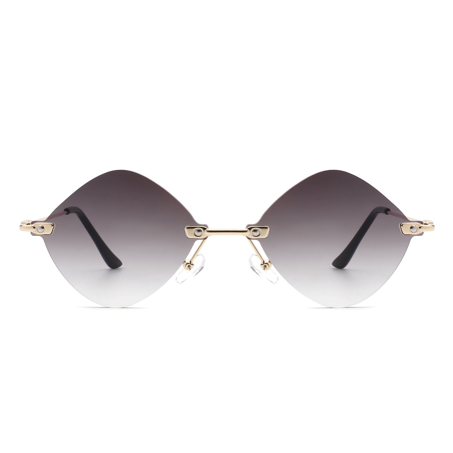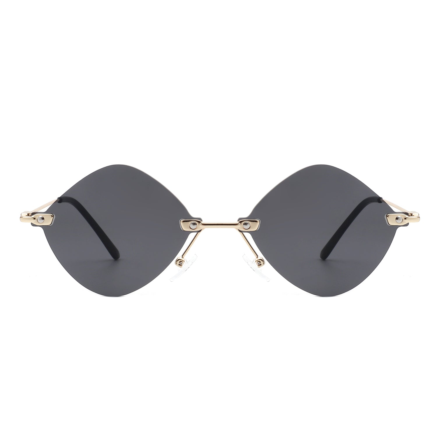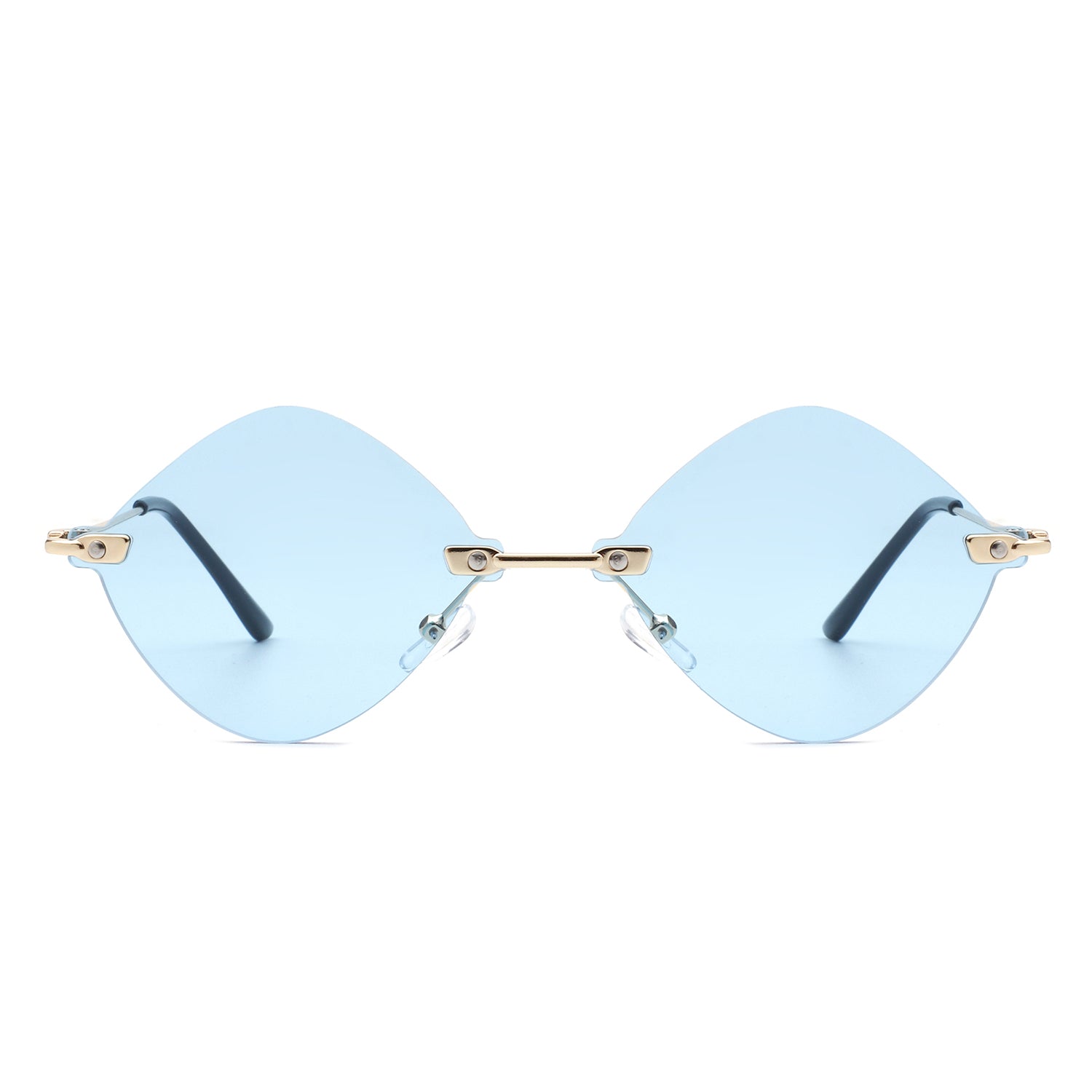 Bluewave - Rimless Retro Round Geometric Frameless Tinted Fashion Sunglasses