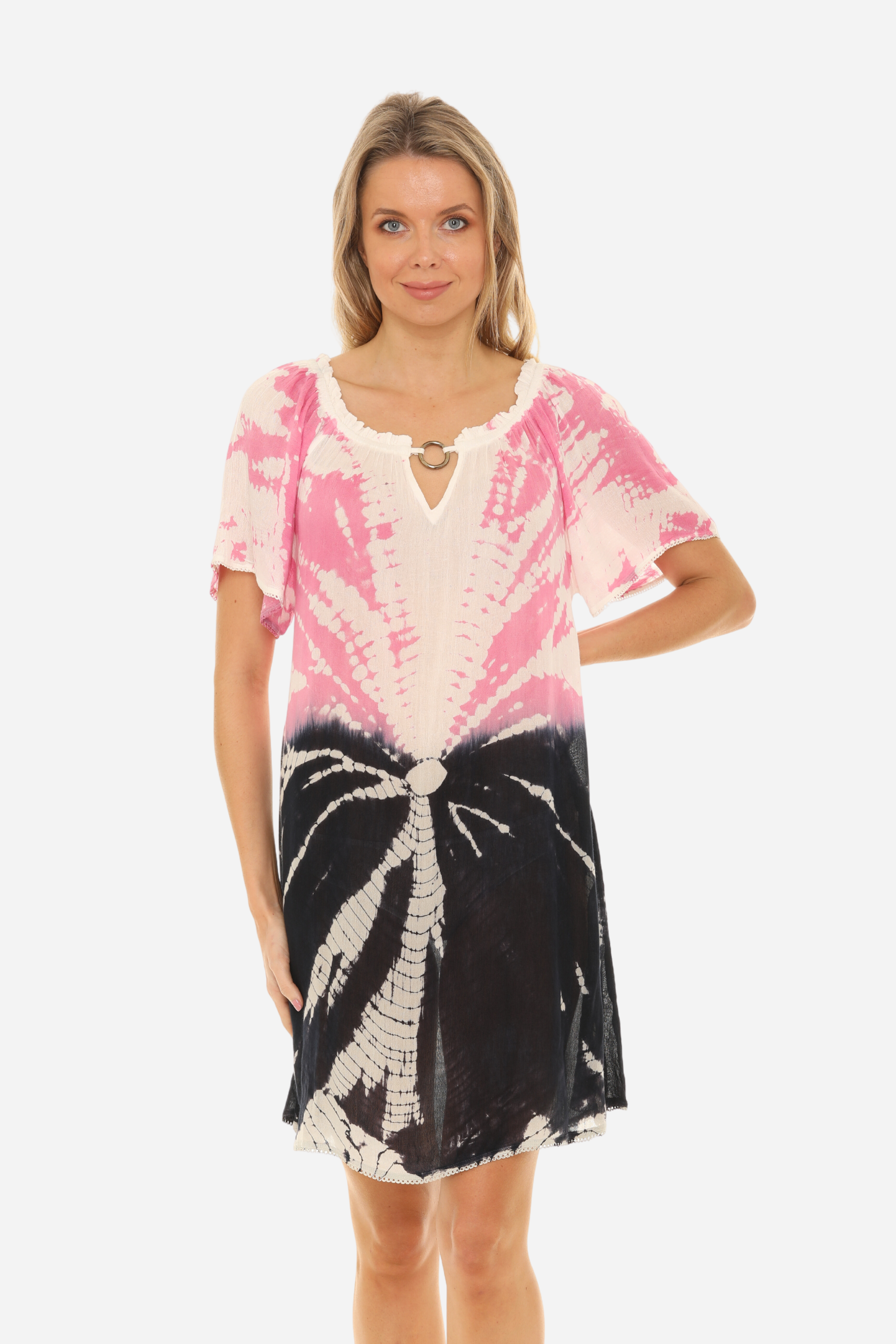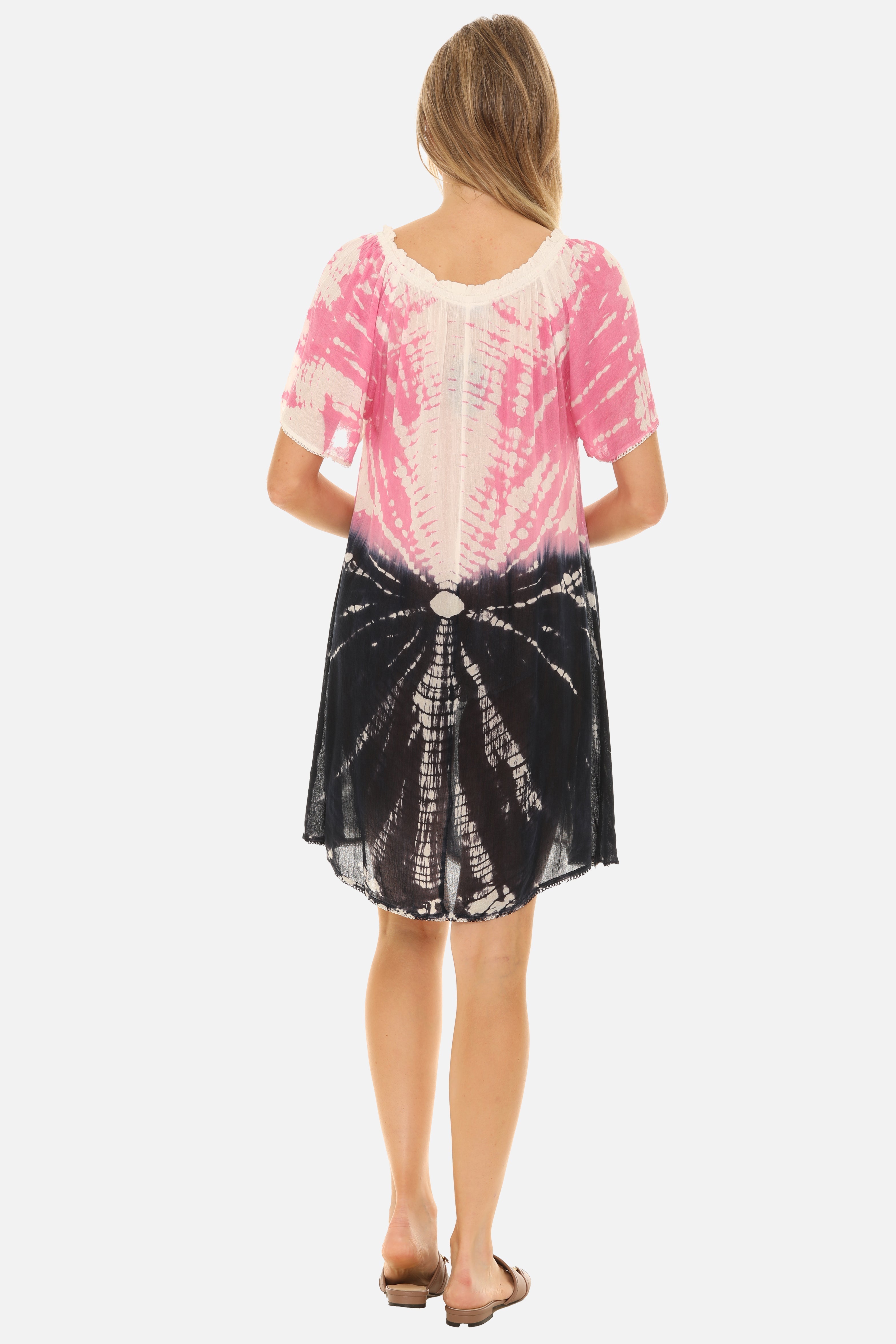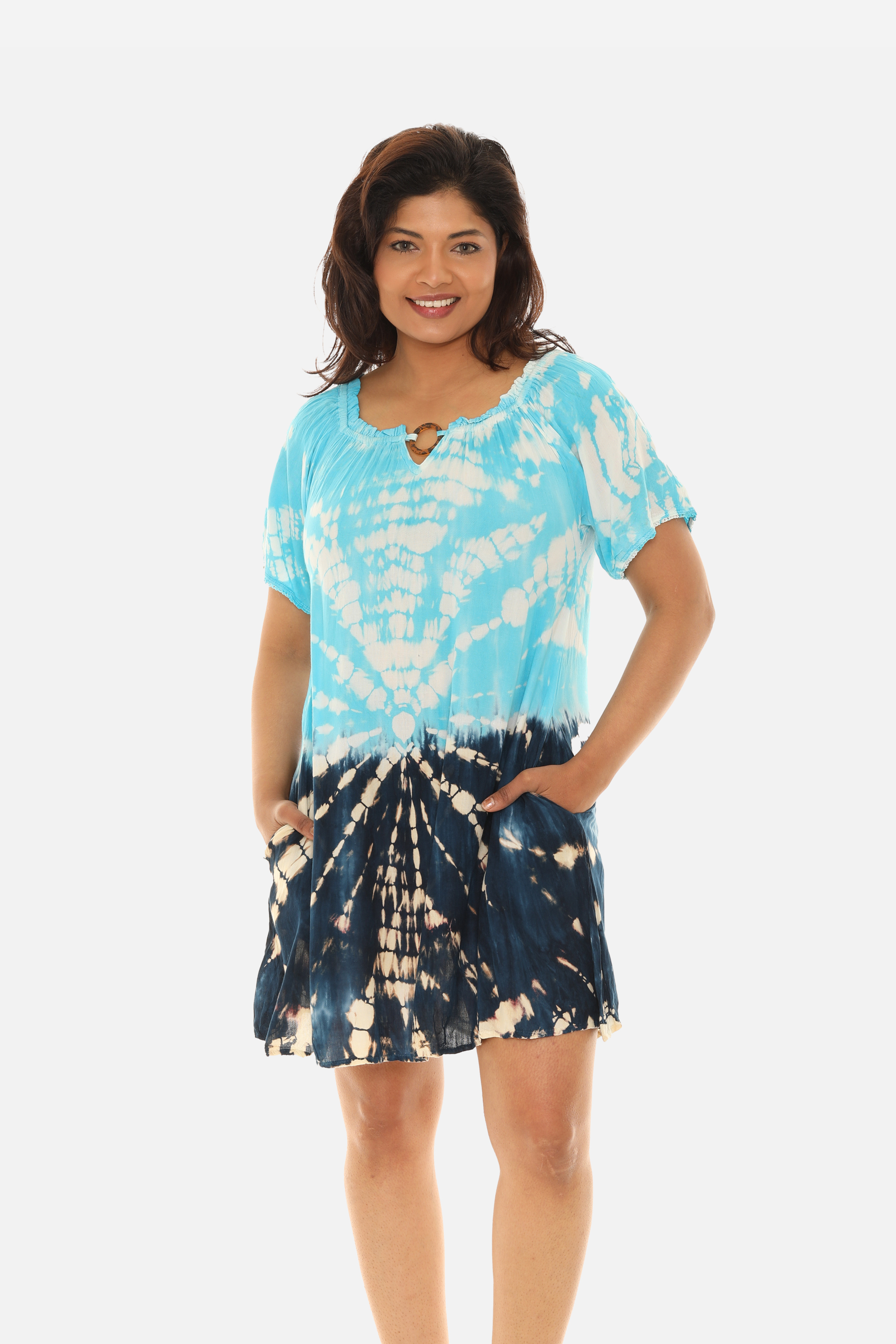 Boho Chic Tie Dye Dress with Keyhole Neckline