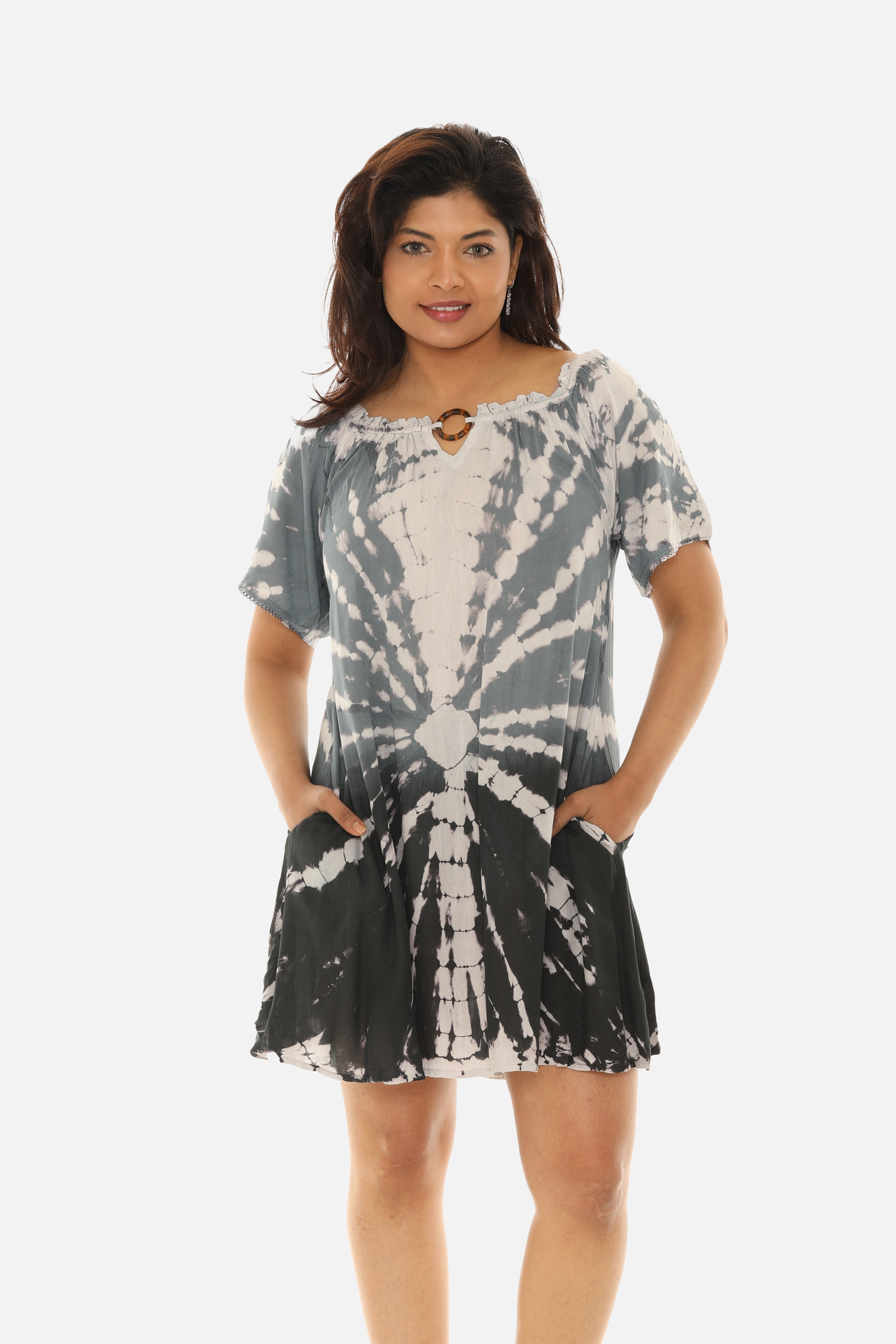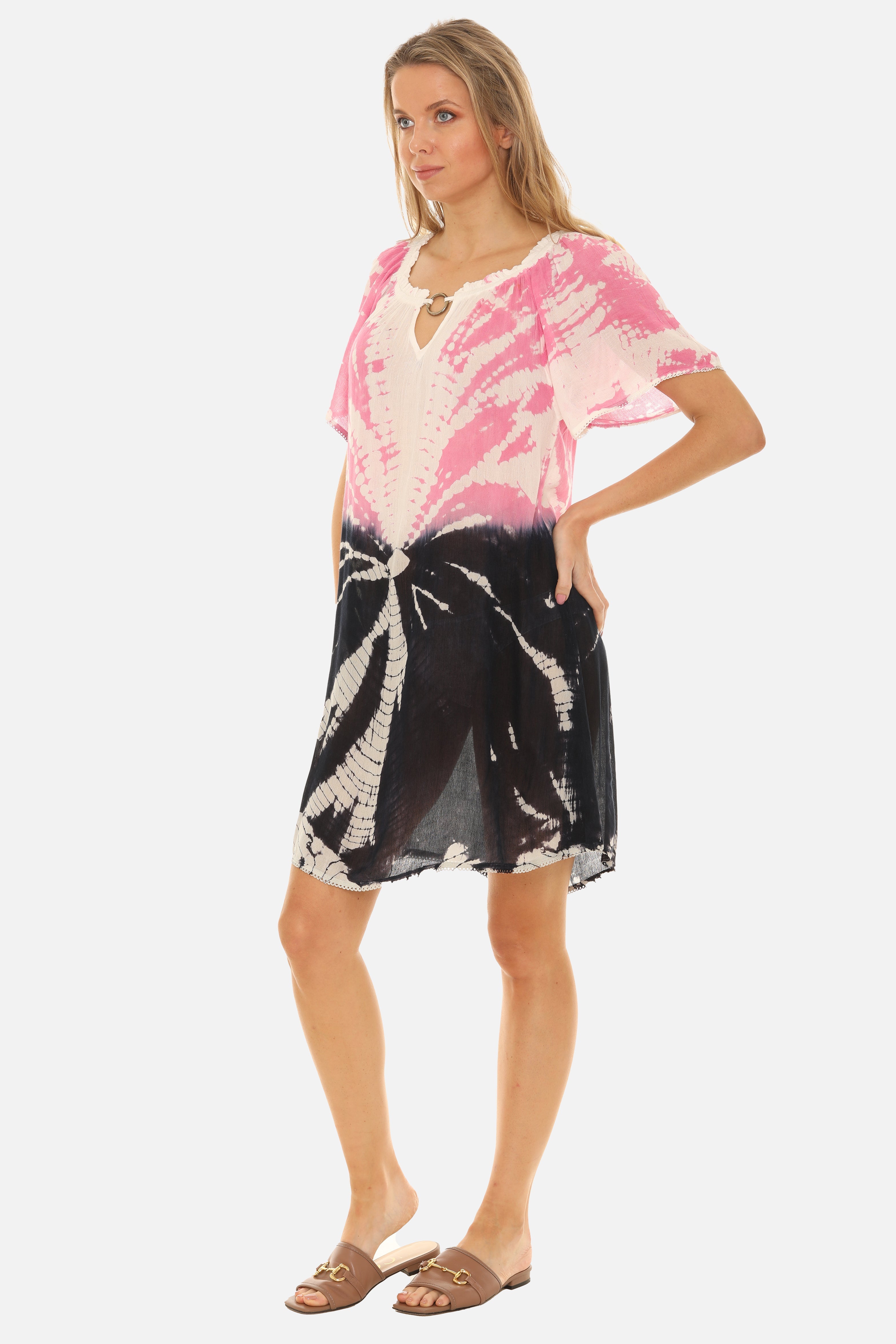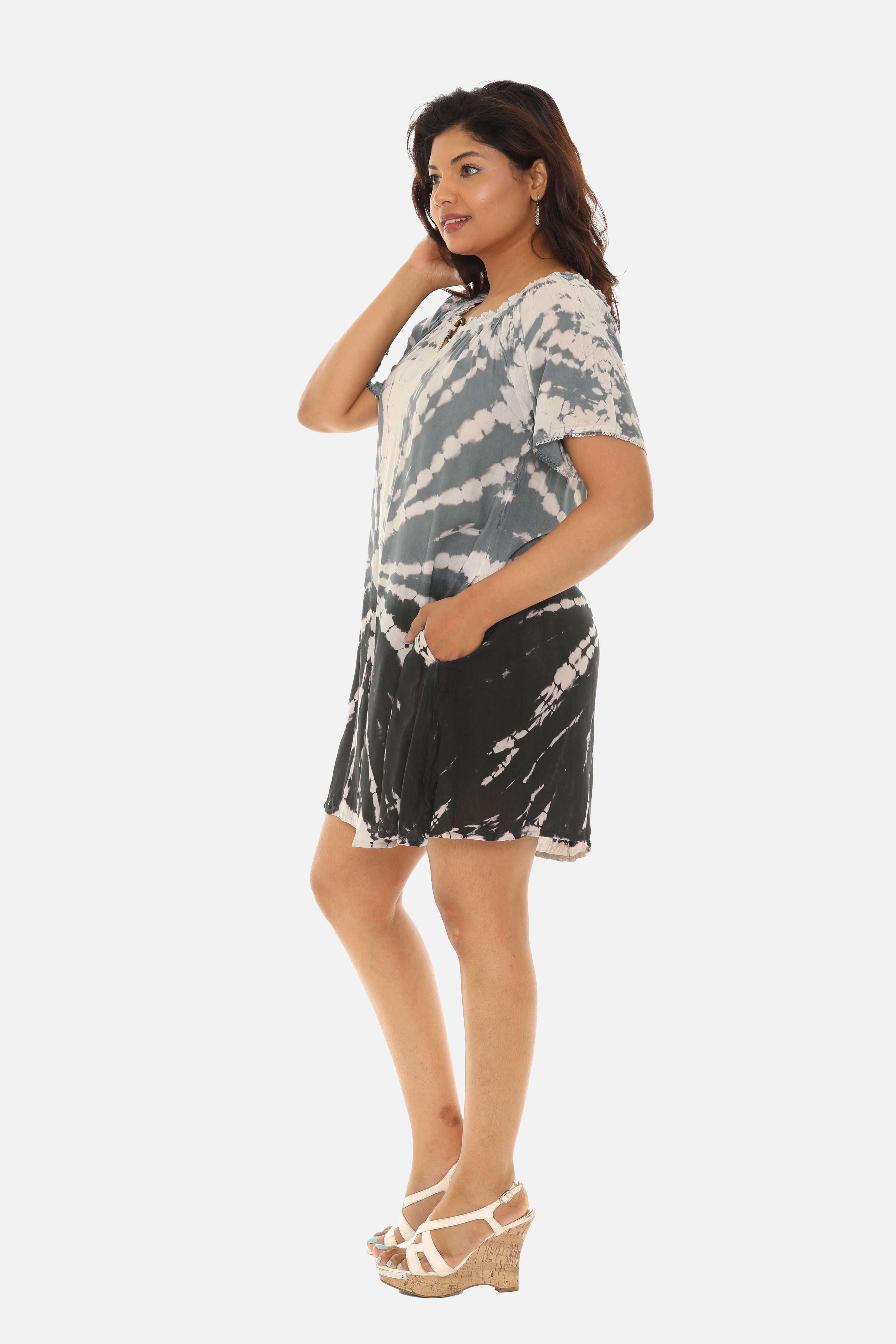 Boho Chic Tie Dye Dress with Keyhole Neckline