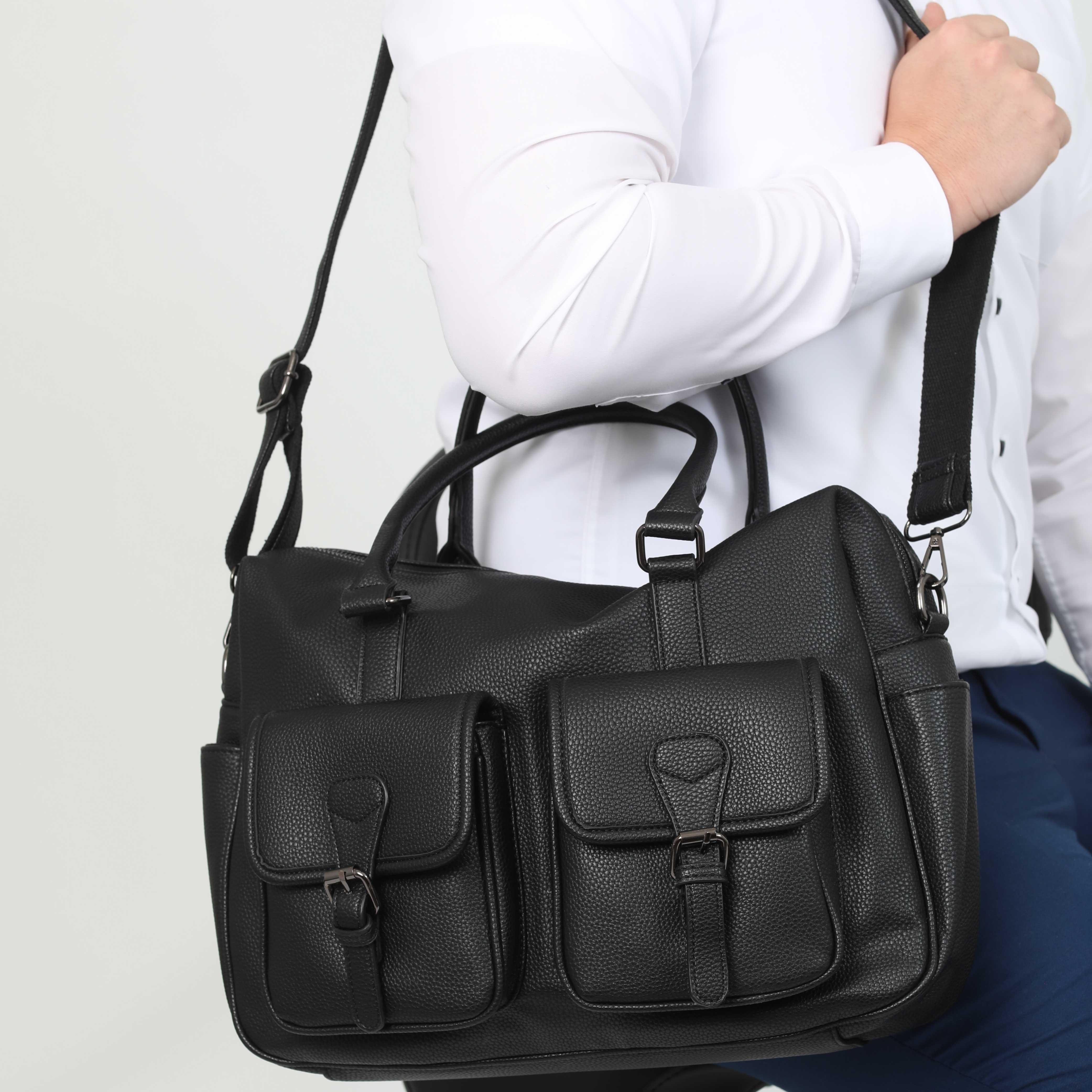 - Two exterior flap pockets with snap closure