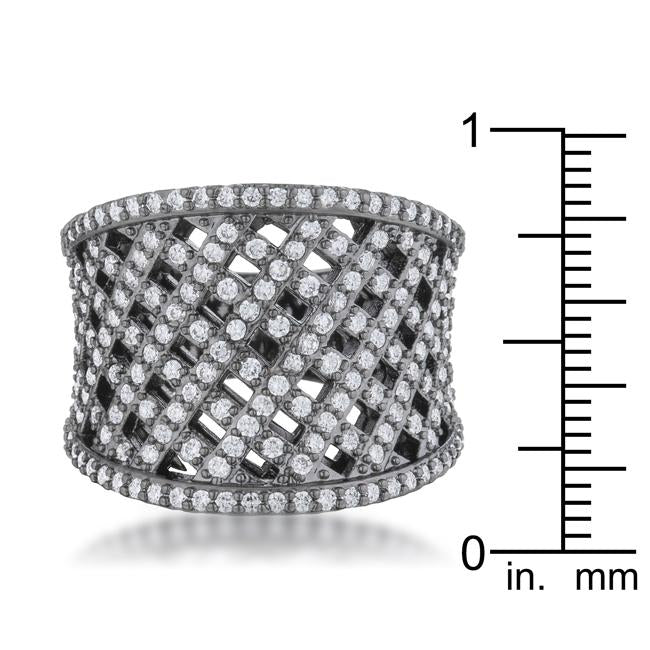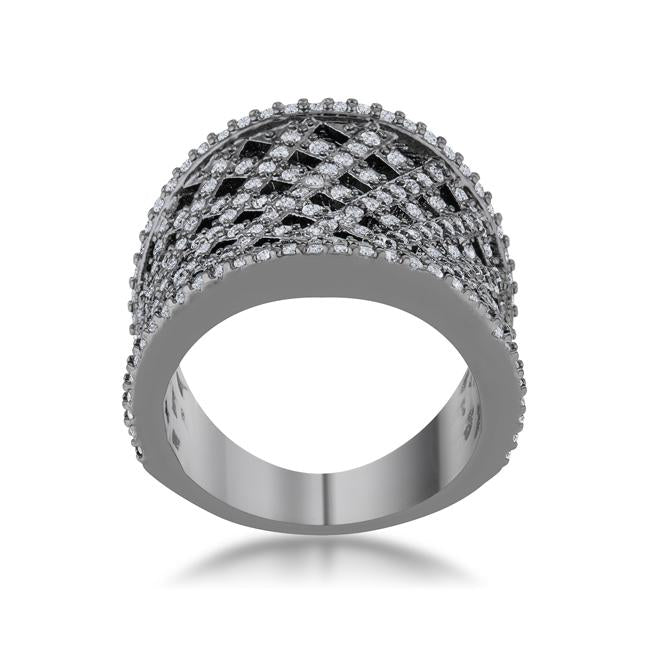 Brin 1.4ct CZ Hematite Wide Woven Style Ring