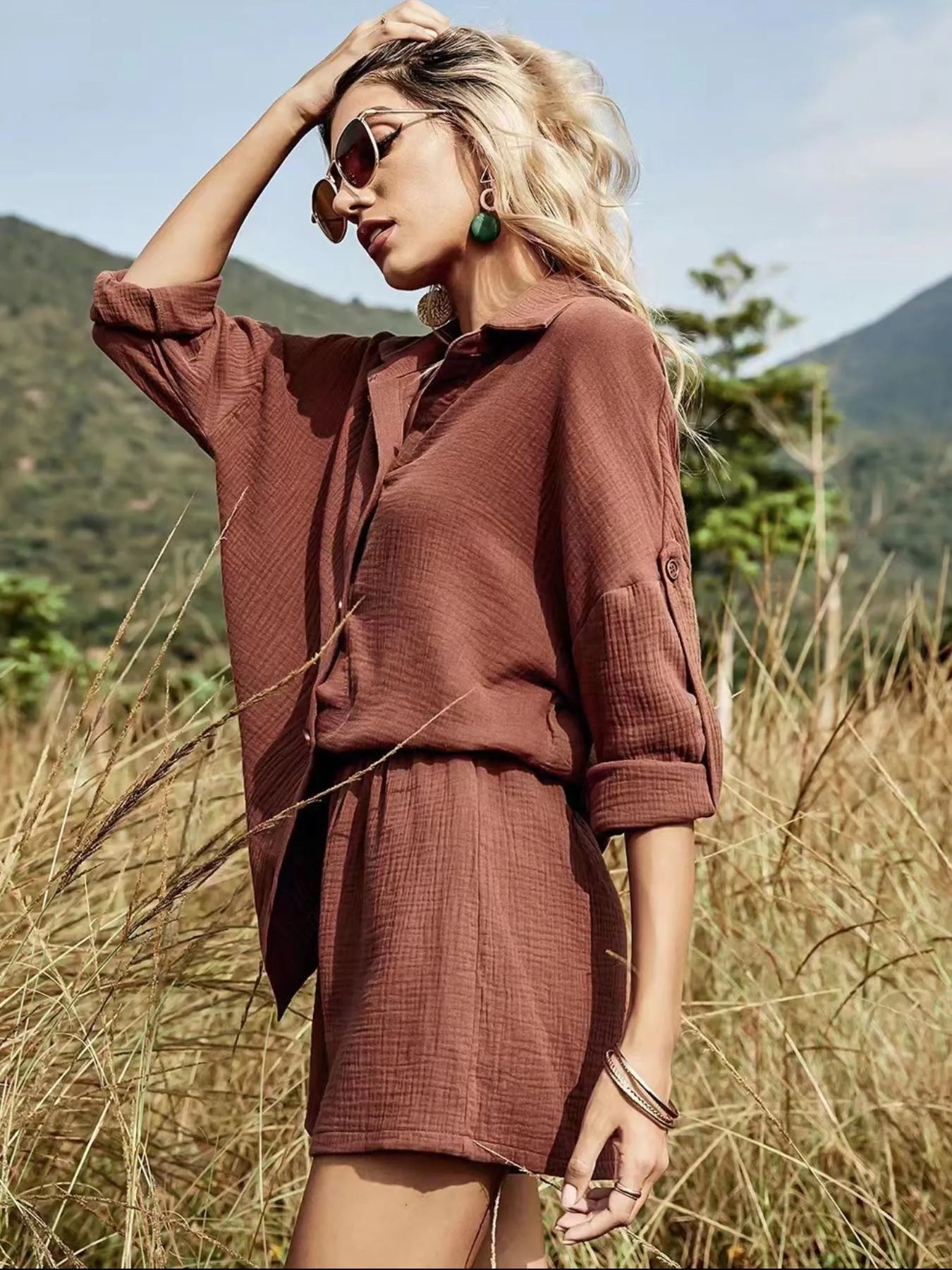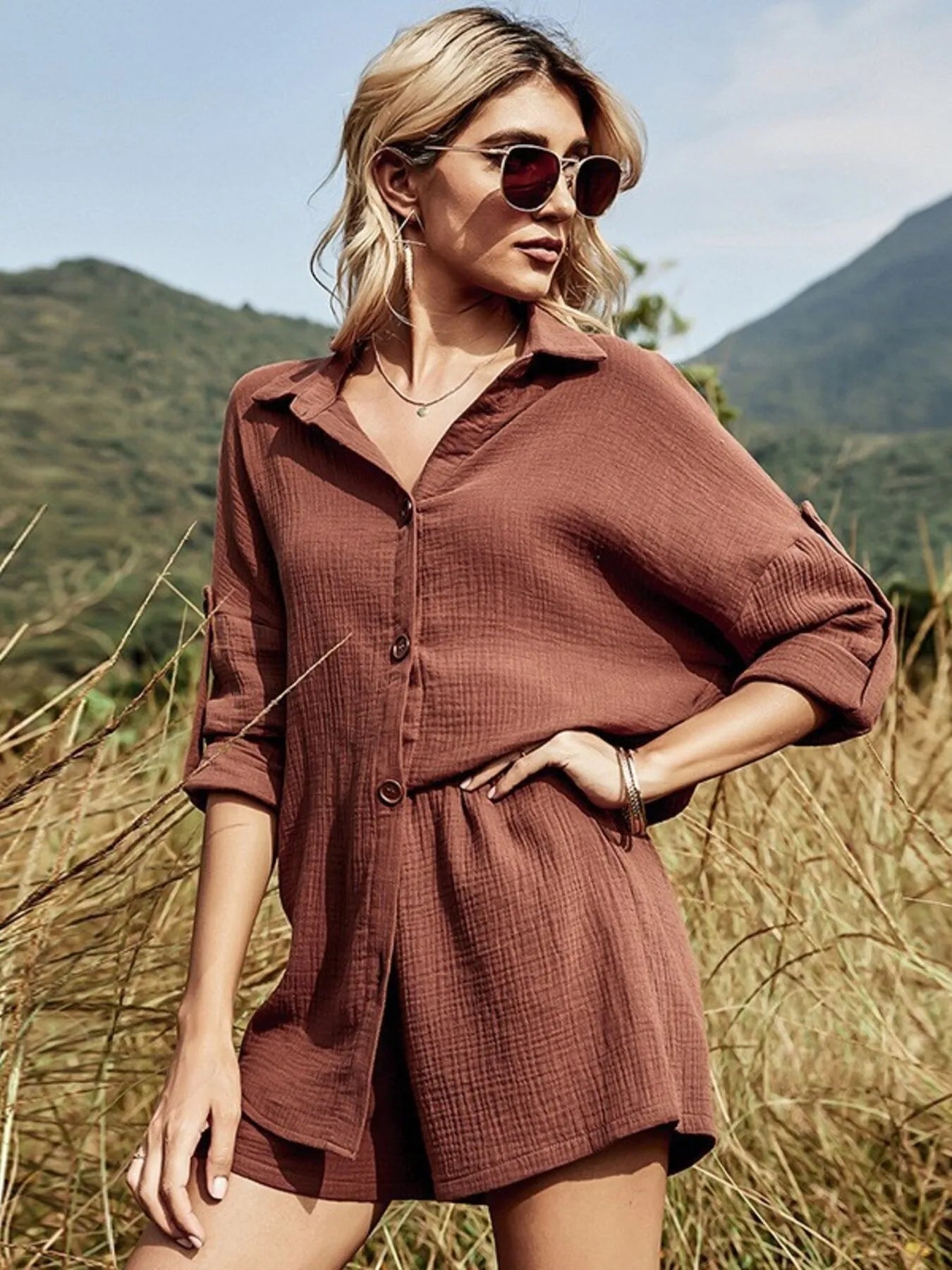 Button Down Shirt and Shorts Set