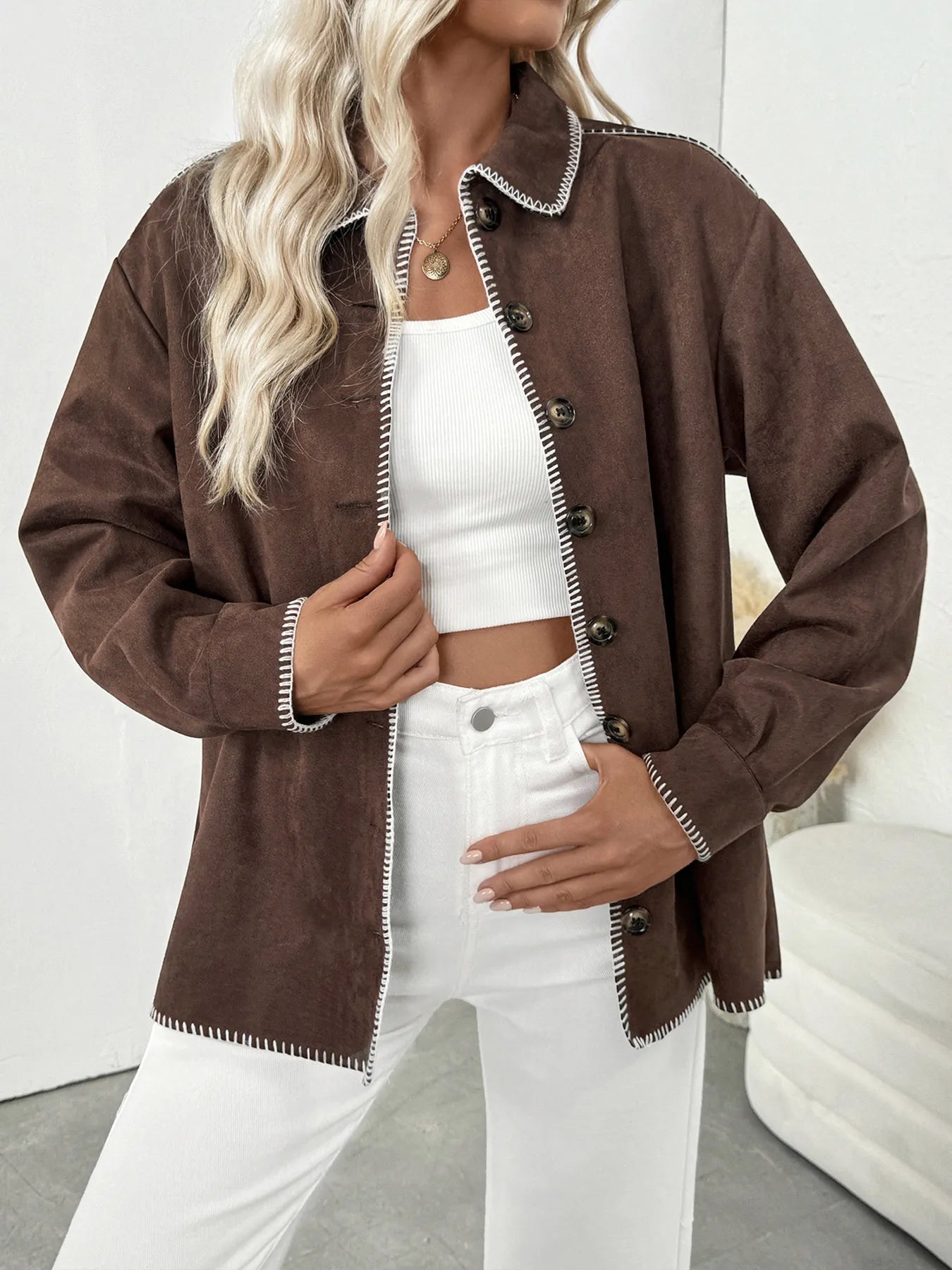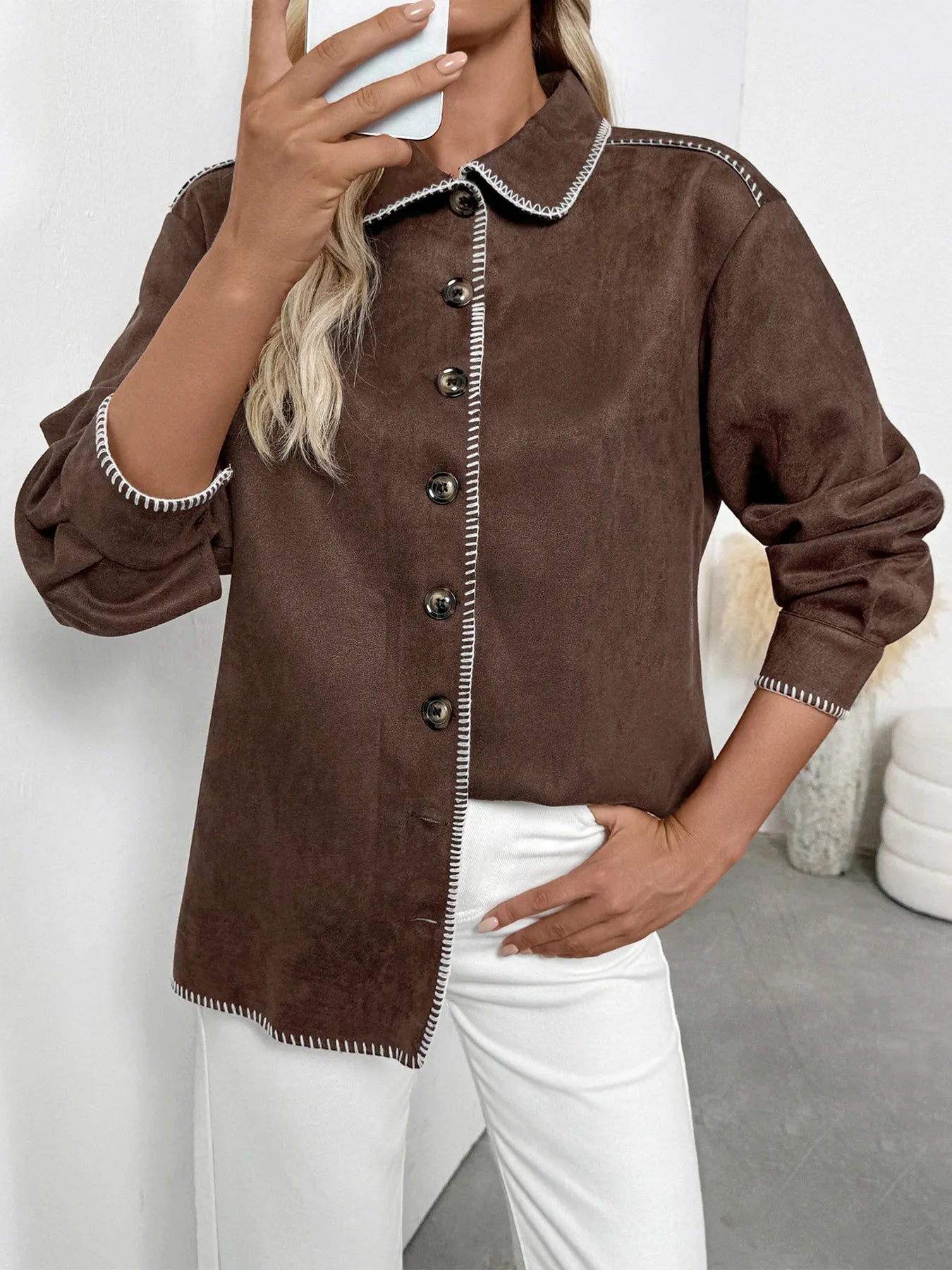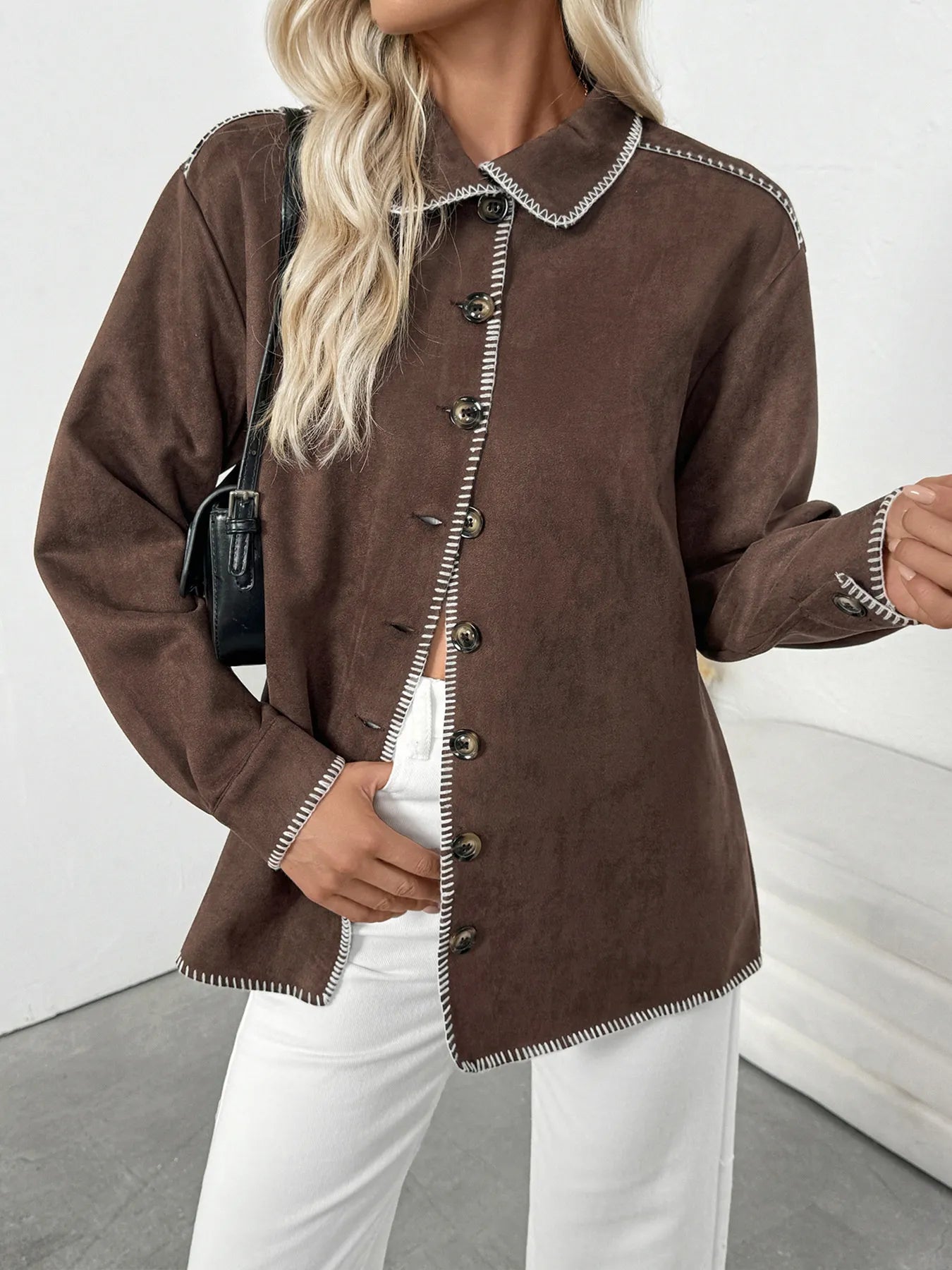 Button Up Contrast Trim Jacket
