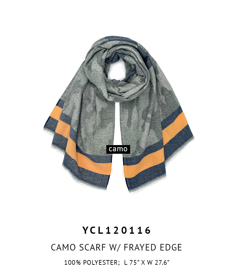 Camo Scarf With Frayed Edge