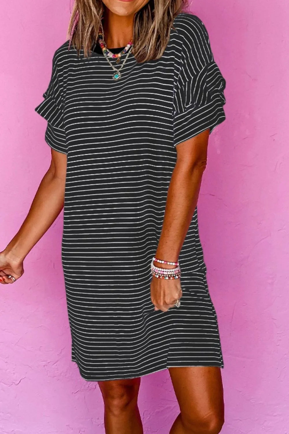 Casual Striped T-Shirt Dress with Pockets