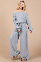 Ces Femme Boat Neck Long Sleeve Drawstring Jumpsuit