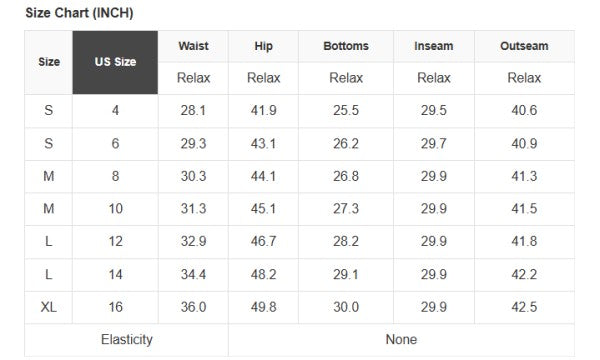 See size chart for approximate measurements.