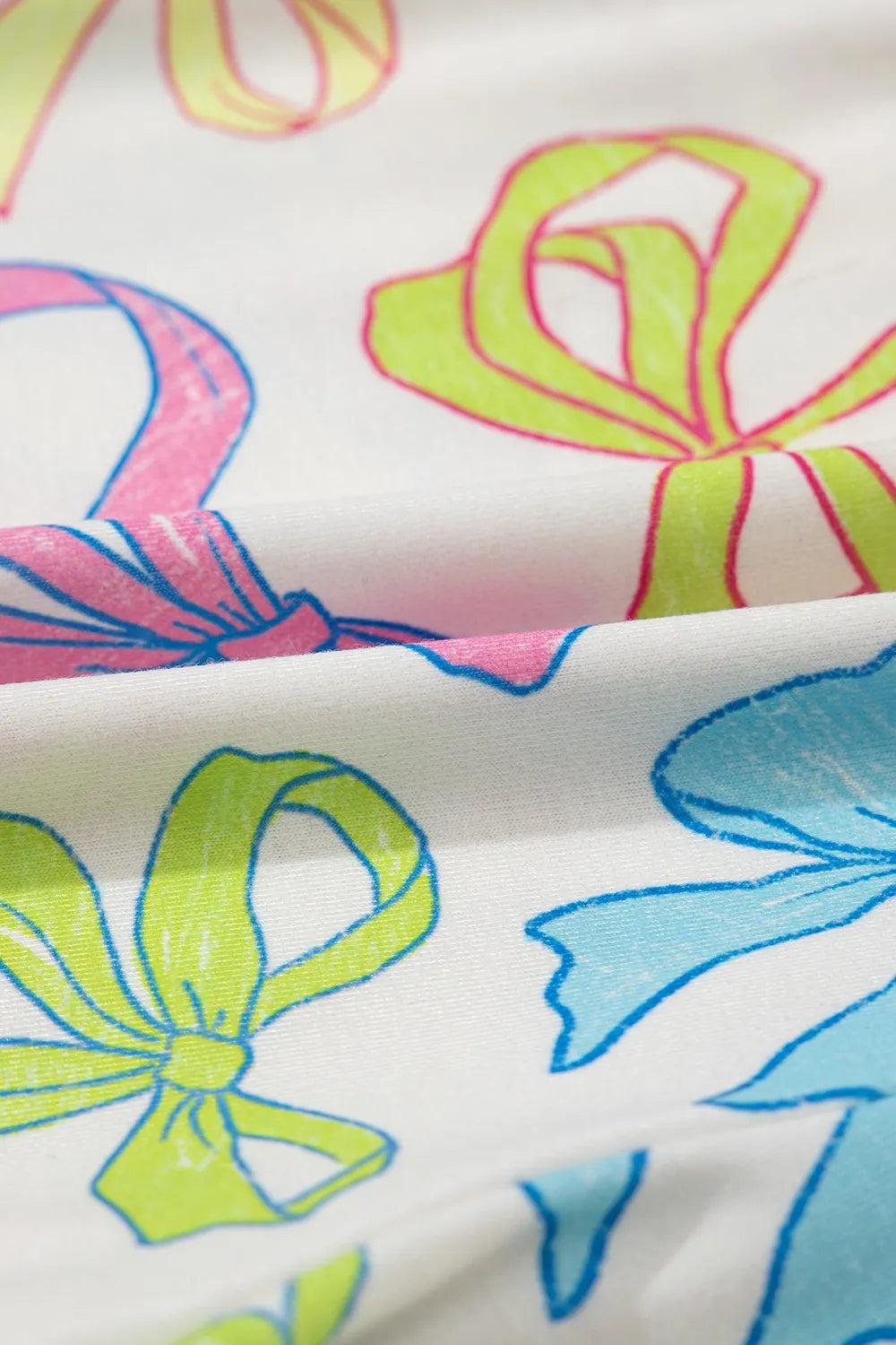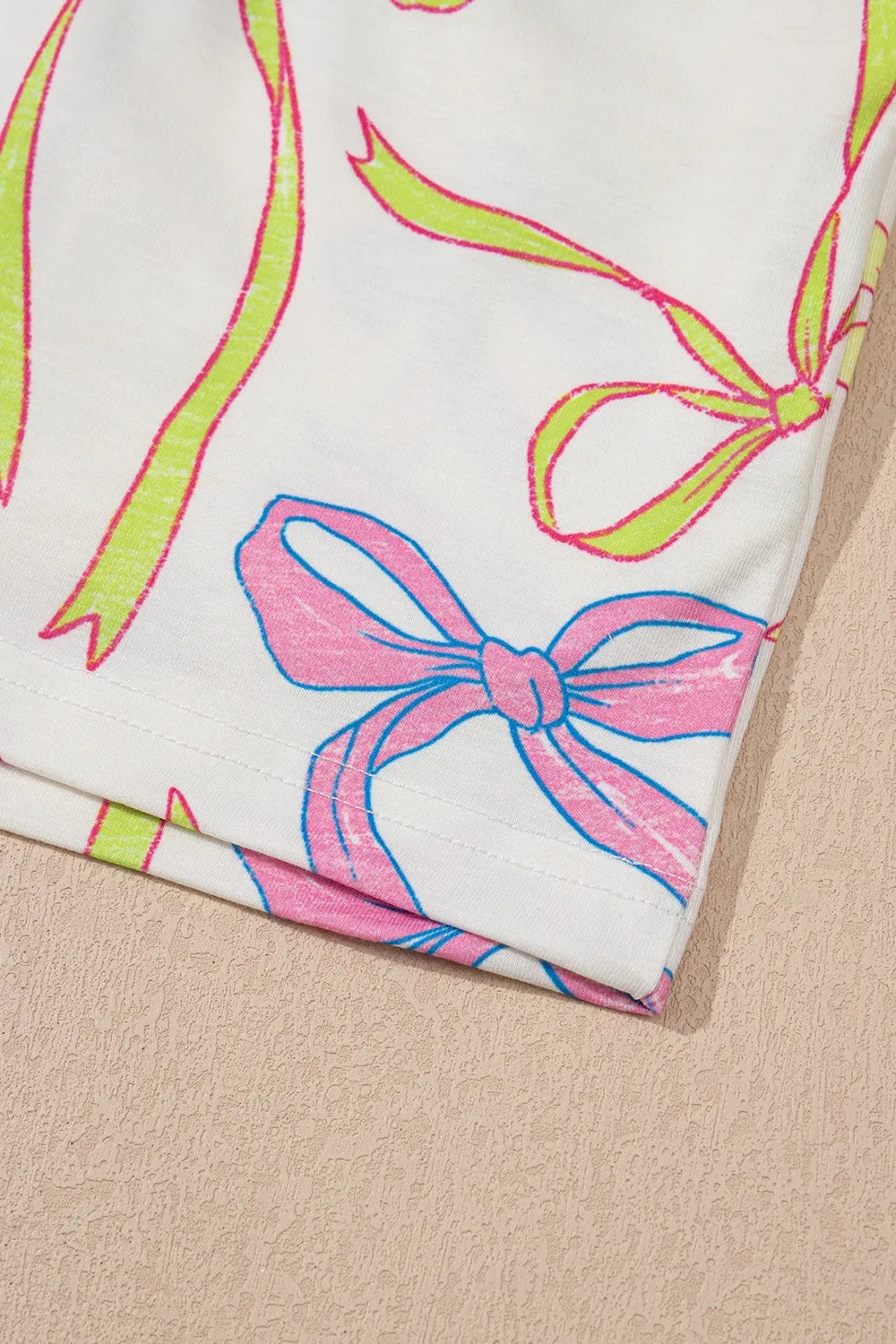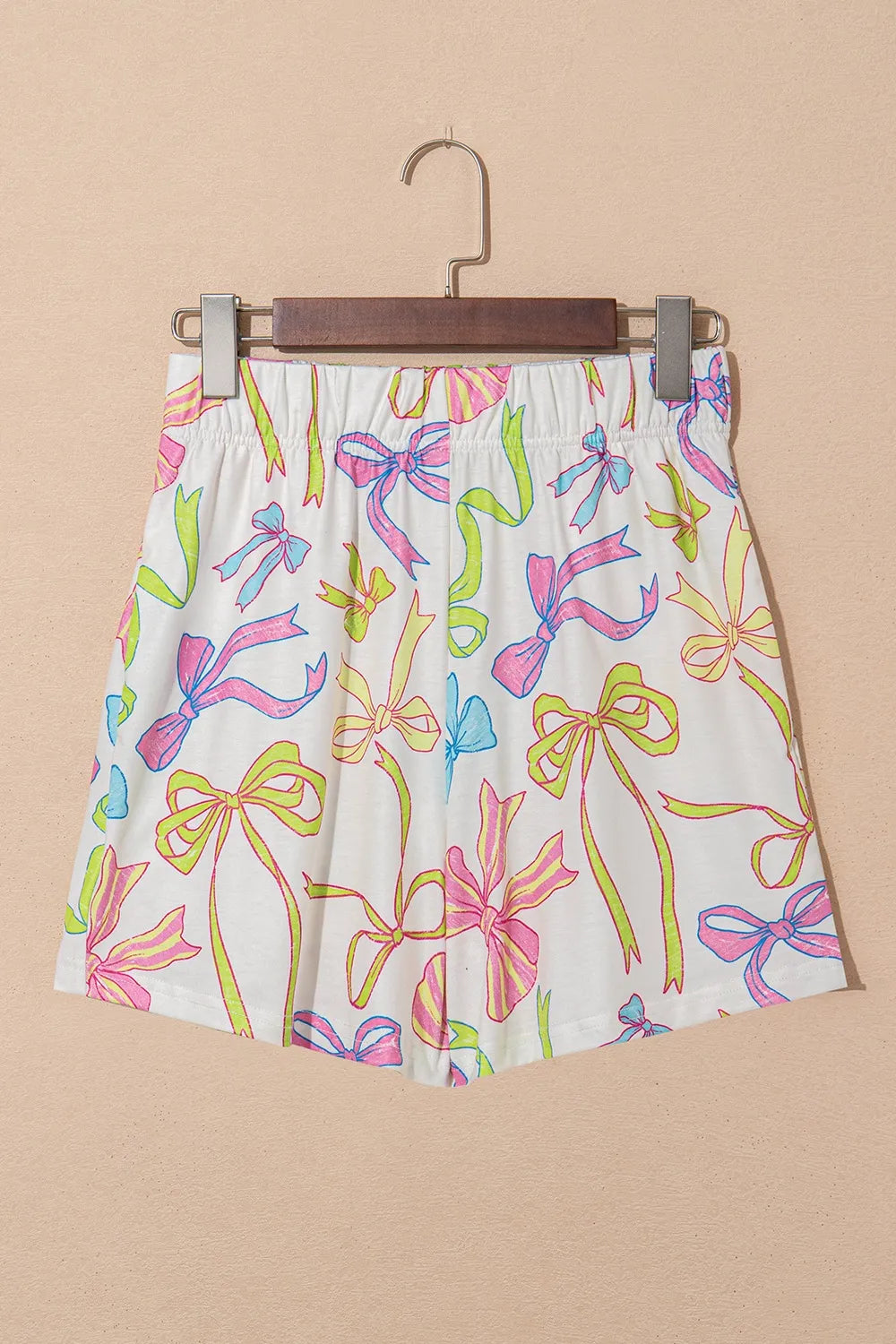 Cheerful Bow Print Elastic Pull On Casual Shorts