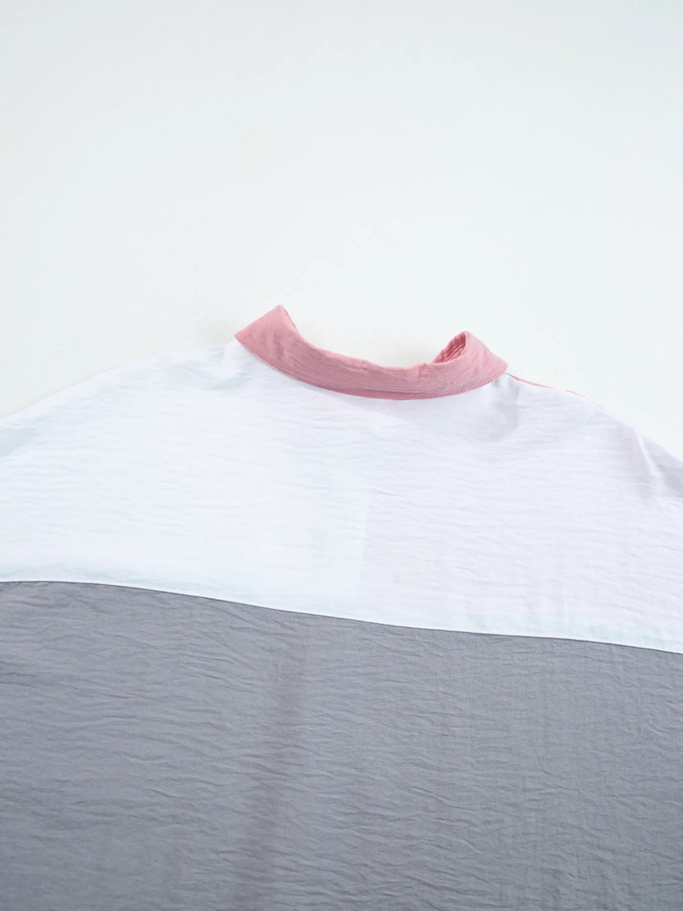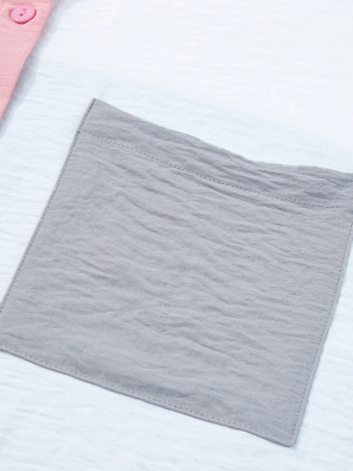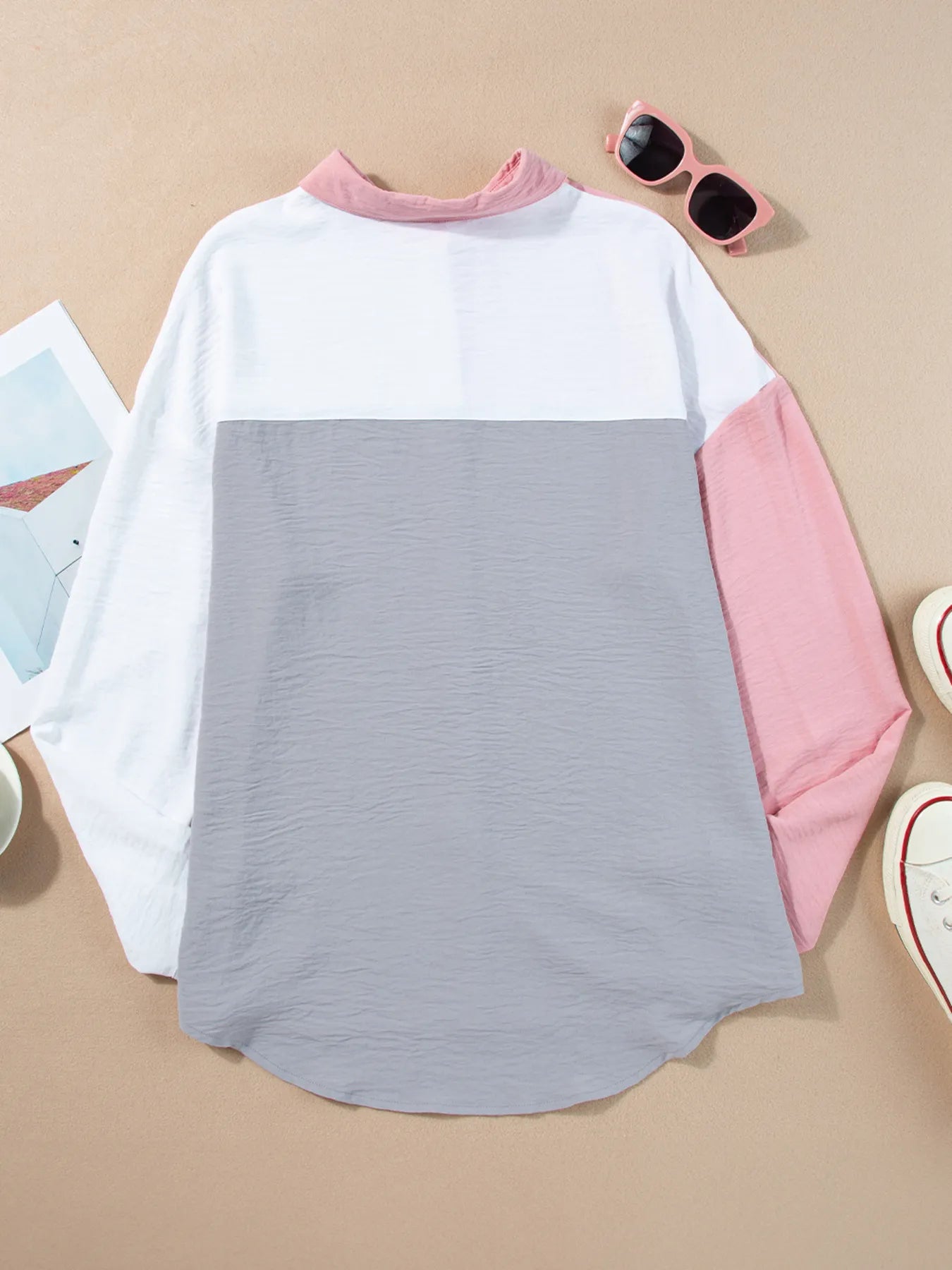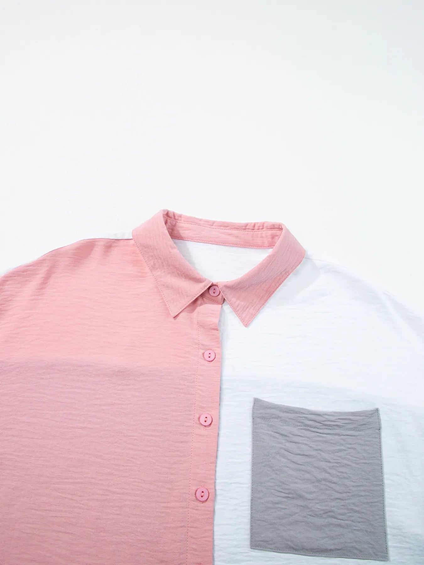 Color Block Oversized Button-Up Shirt with Chest Pocket