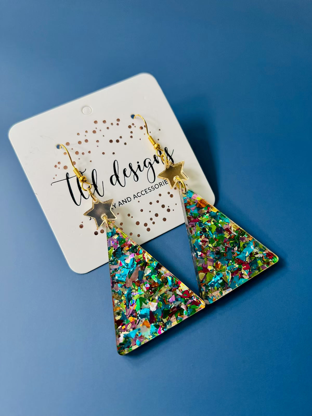 Lightweight acrylic earrings with stainless steel posts. 3 inch dangle