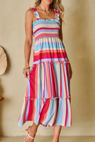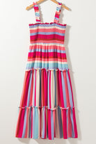 Contrast Stripe Wide Strap Smocked Tiered Dress