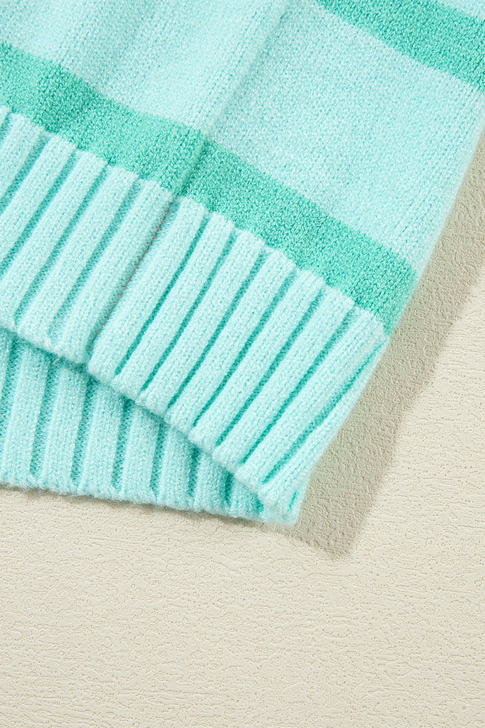 Contrast Striped Round Neck Long Sleeve Knit Top