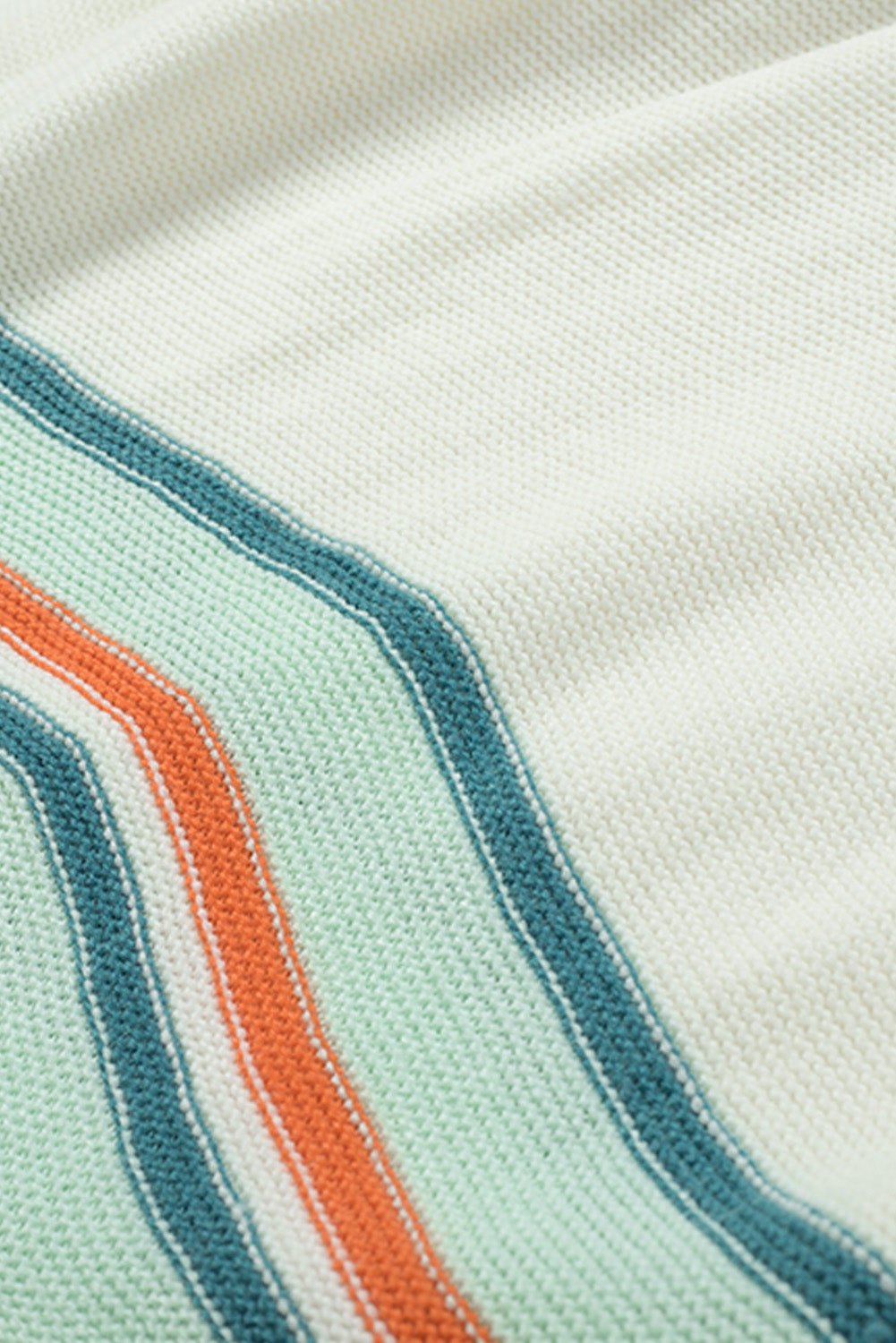 Contrast Striped Turtleneck Dropped Shoulder Sweater
