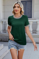 Contrast Trim Round Neck Short Sleeve T-Shirt