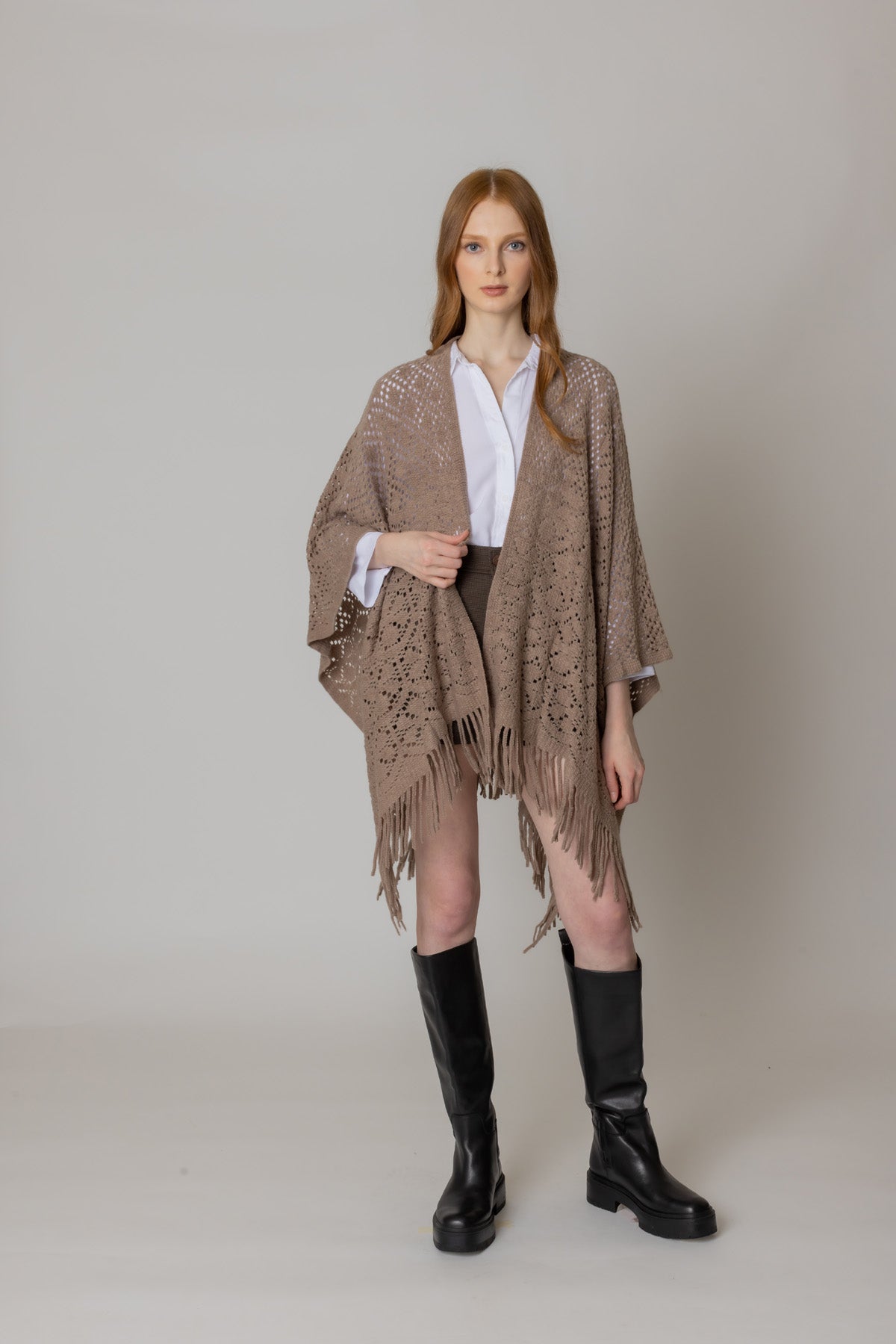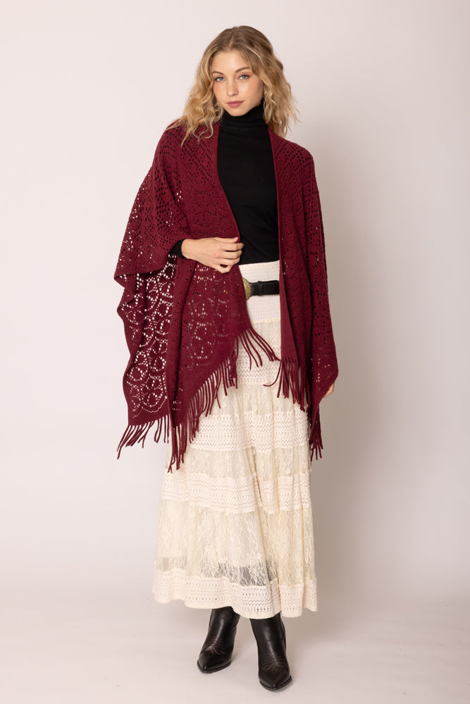 Experience the ultimate comfort and style with our Crochet Ruana! Made with high-quality materials, this ruana is designed to keep you warm and sophisticated wherever you go. Its crochet design adds a unique touch, making it a must-have addition to your wardrobe. Elevate your fashion game with our Crochet Ruana today!