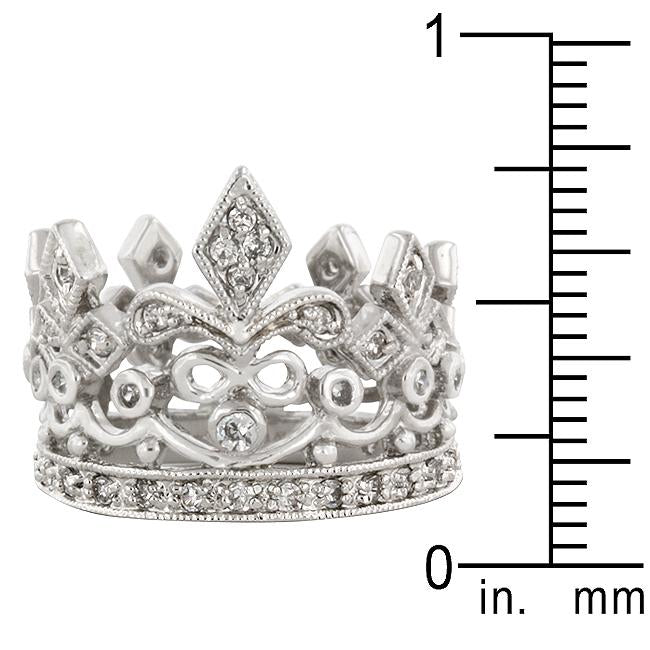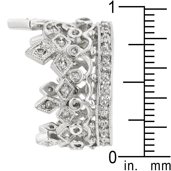 The Cubic Zirconia Crown Eternity Ring features an ensemble of cubic zirconia in various settings that resemble the fleur de lis in a journey style. Genuine Rhodium Plating is achieved using an electroplating process that coats the item with heavy layers of rhodium a close cousin to platinum which gives our jewelry a platinum luster.