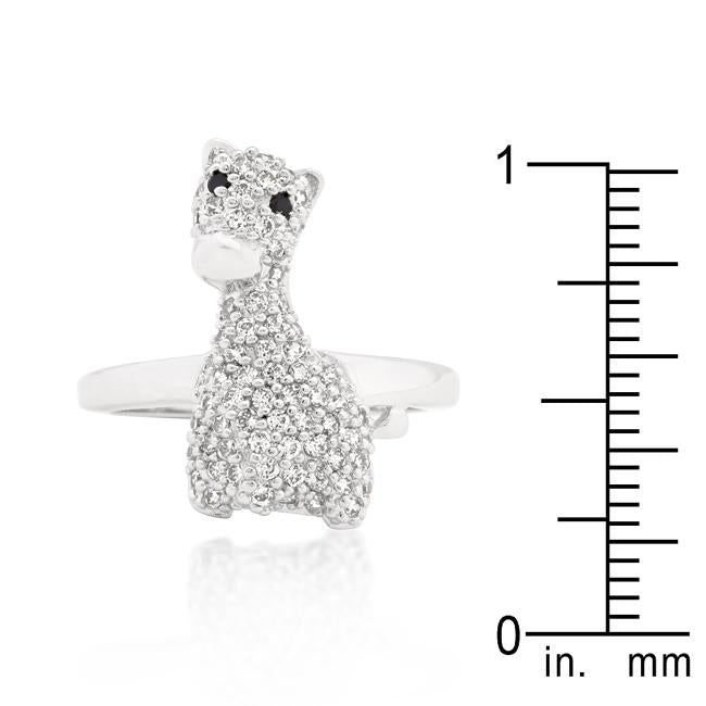 This statement animal ring features an adorable Giraffe with cubic zirconia encrusted accents. Our genuine rhodium finish is achieved using an electroplating process that coats the item with heavy layers of rhodium a close cousin to platinum which gives our jewelry a platinum luster.