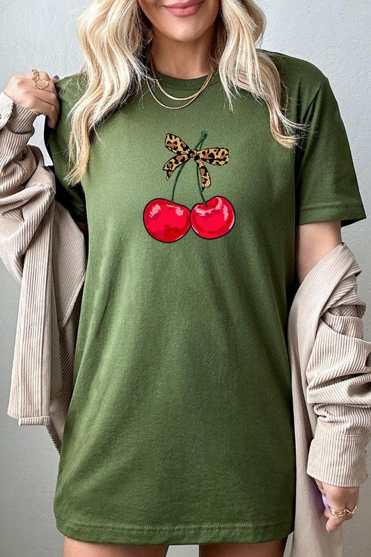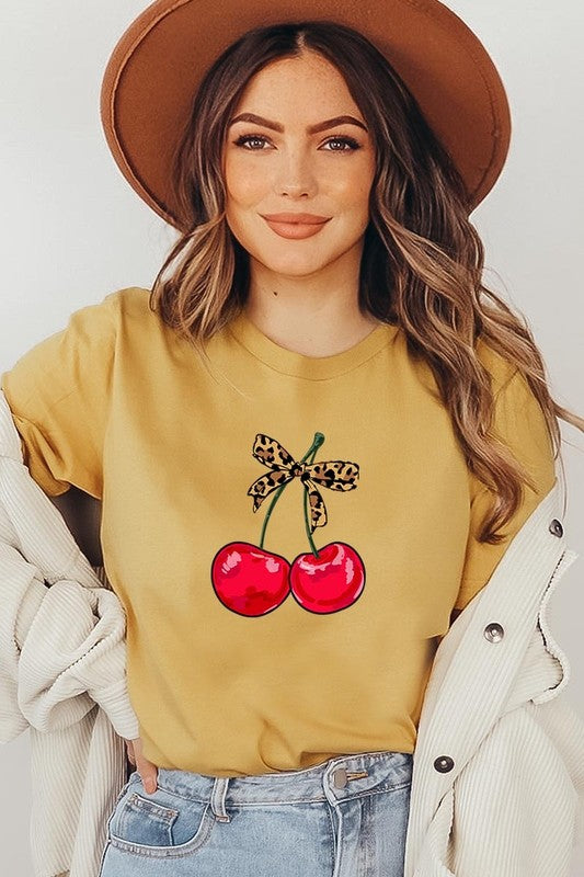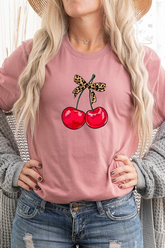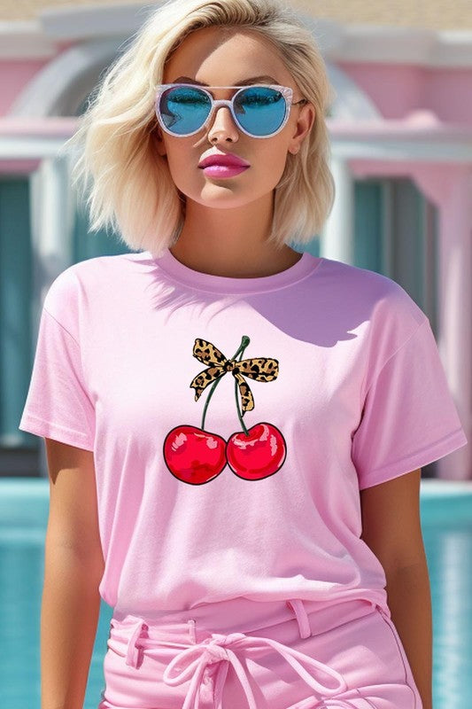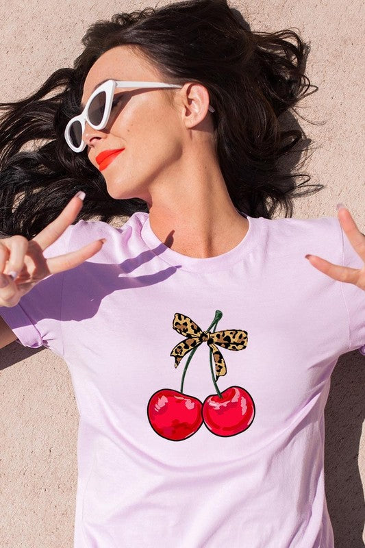 Leopard Bow Cherry Graphic Tee.