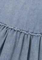 Cutout Round Neck Balloon Sleeve Denim Dress