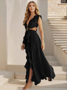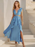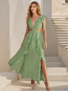 Cutout Ruffled Cap Sleeve Maxi Dress