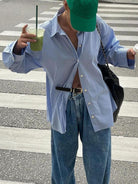 Devine Button Down Striped Collared Neck Long Sleeve Shirt