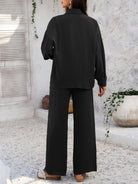 Devine Collared Neck Long Sleeve Top and Pants Set