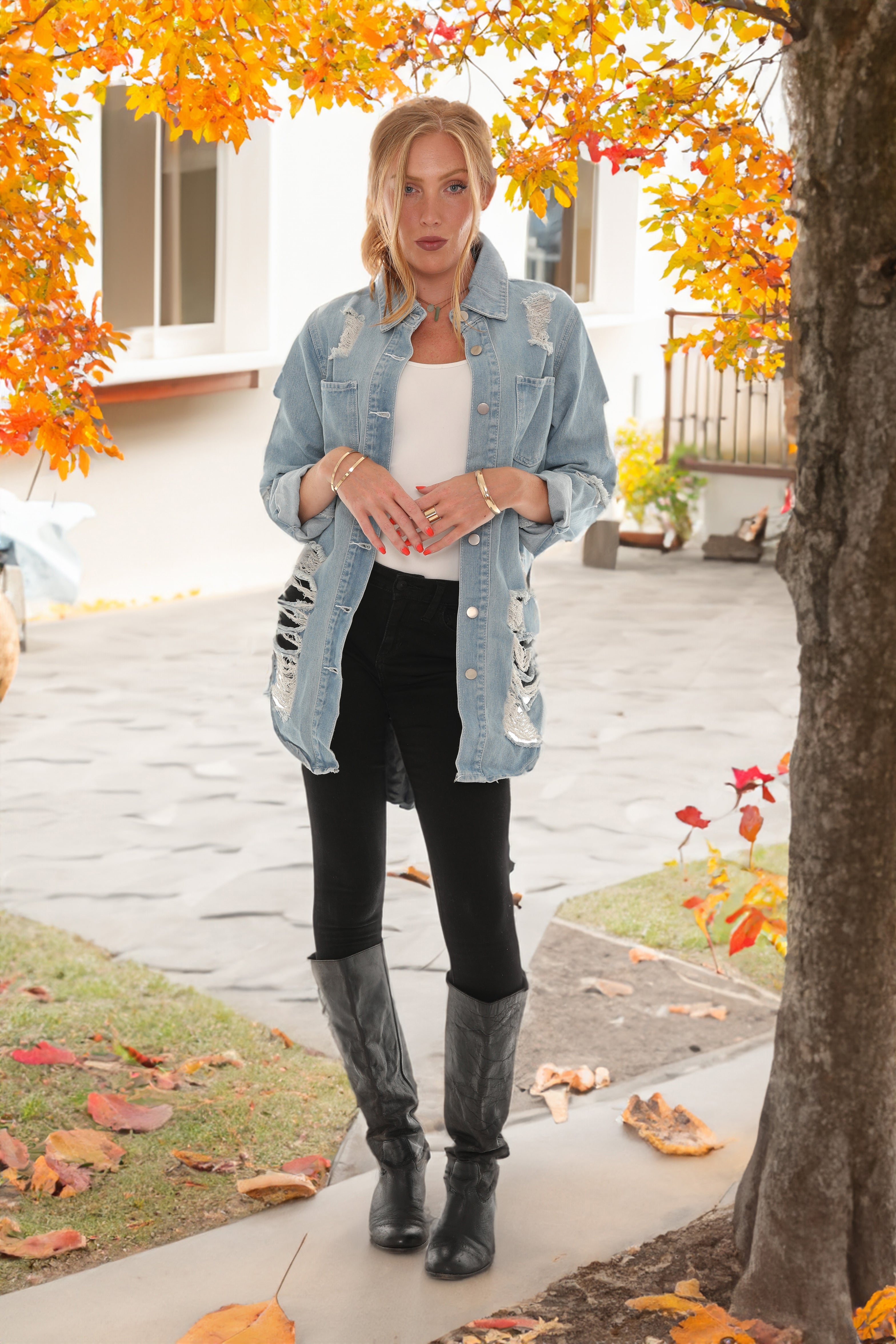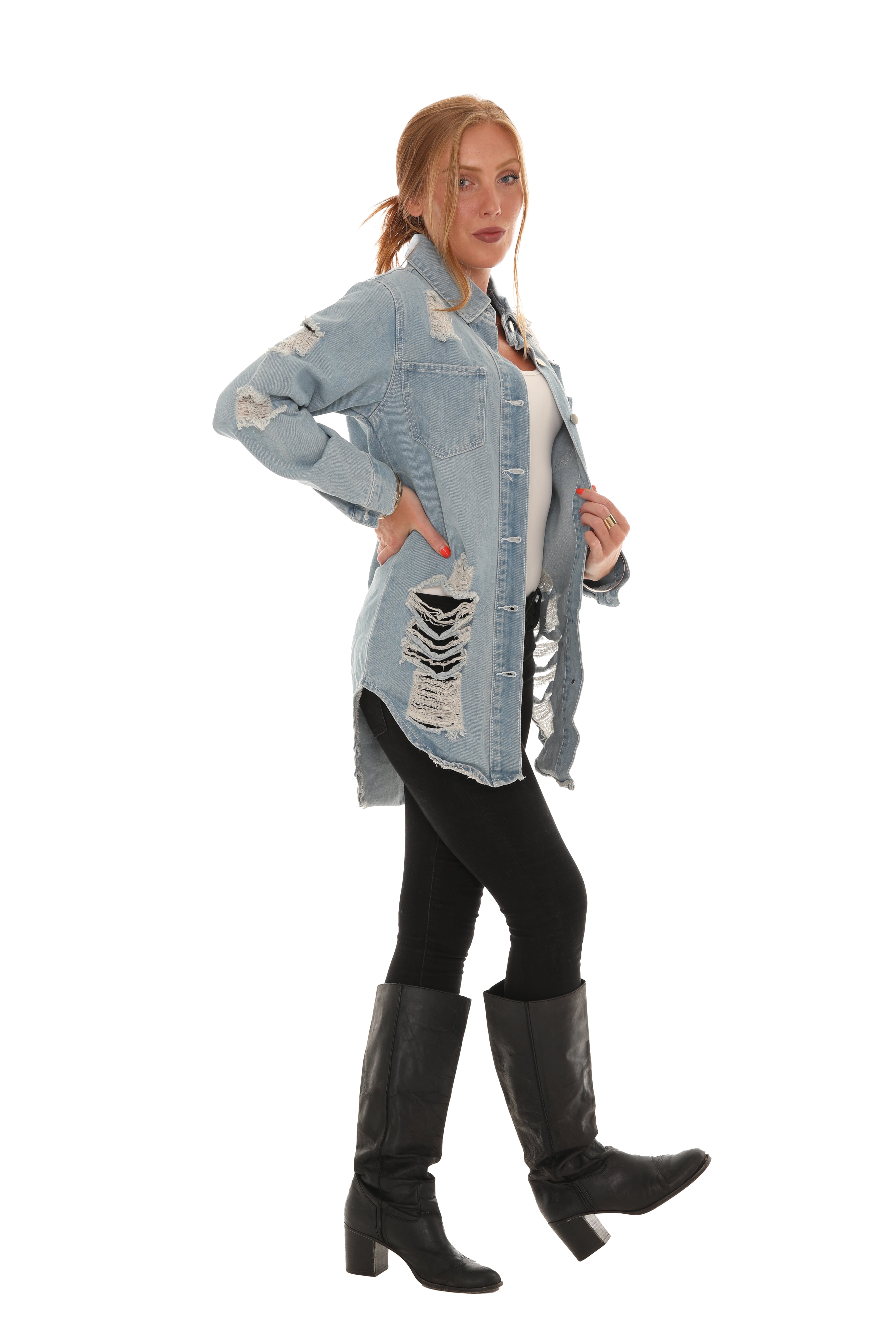 Add some edge to your wardrobe with this classic distressed denim shirt, crafted from rugged and hard-wearing fabric for a touch of effortless style. The distressed detailing adds a unique and sophisticated flair that will make you stand out from the crowd.