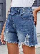 Distressed Raw Hem Asymmetrical Waist Denim Shorts