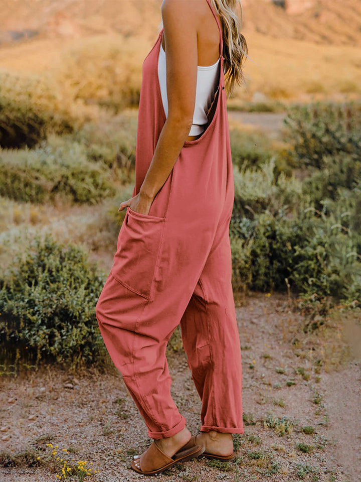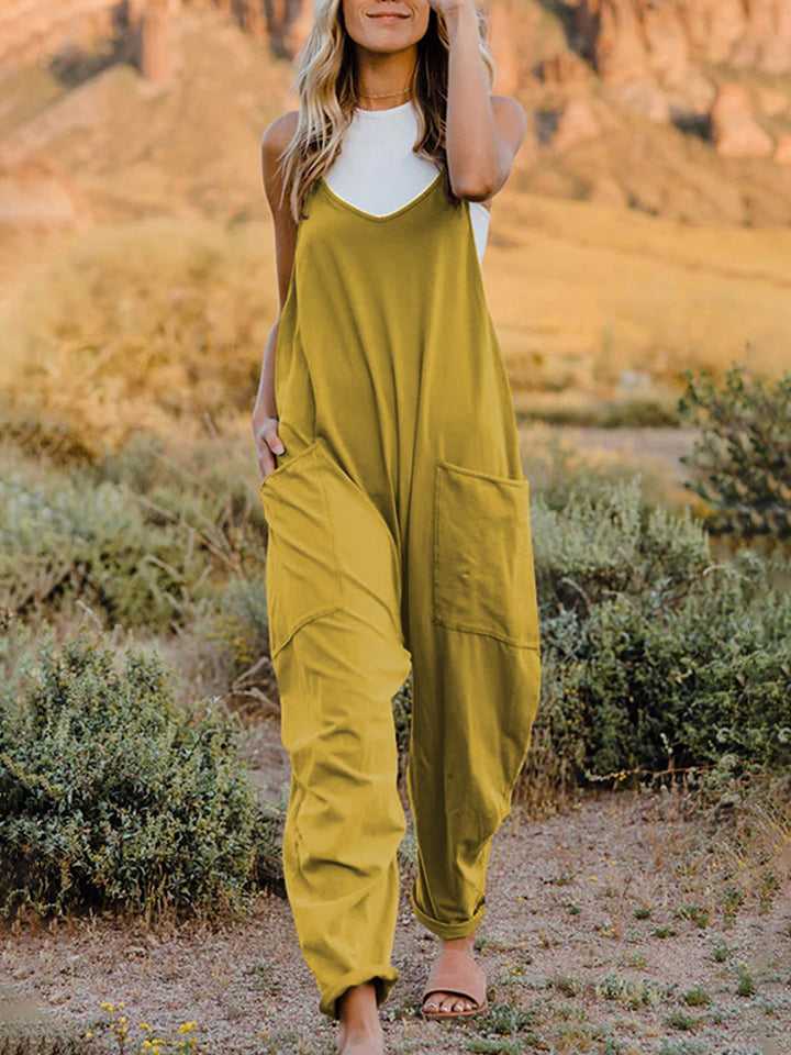 Double Take Full Size Sleeveless V-Neck Pocketed Jumpsuit