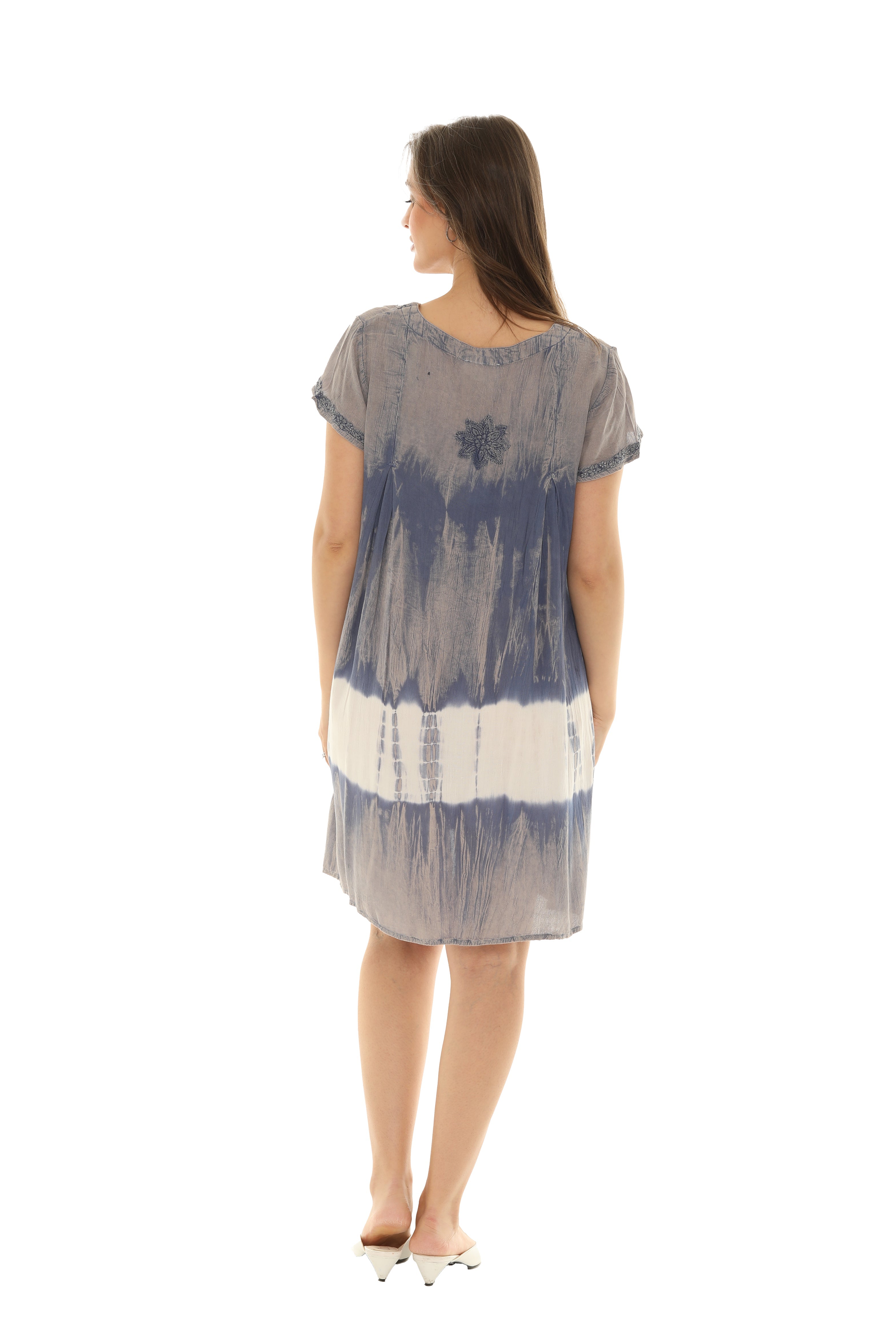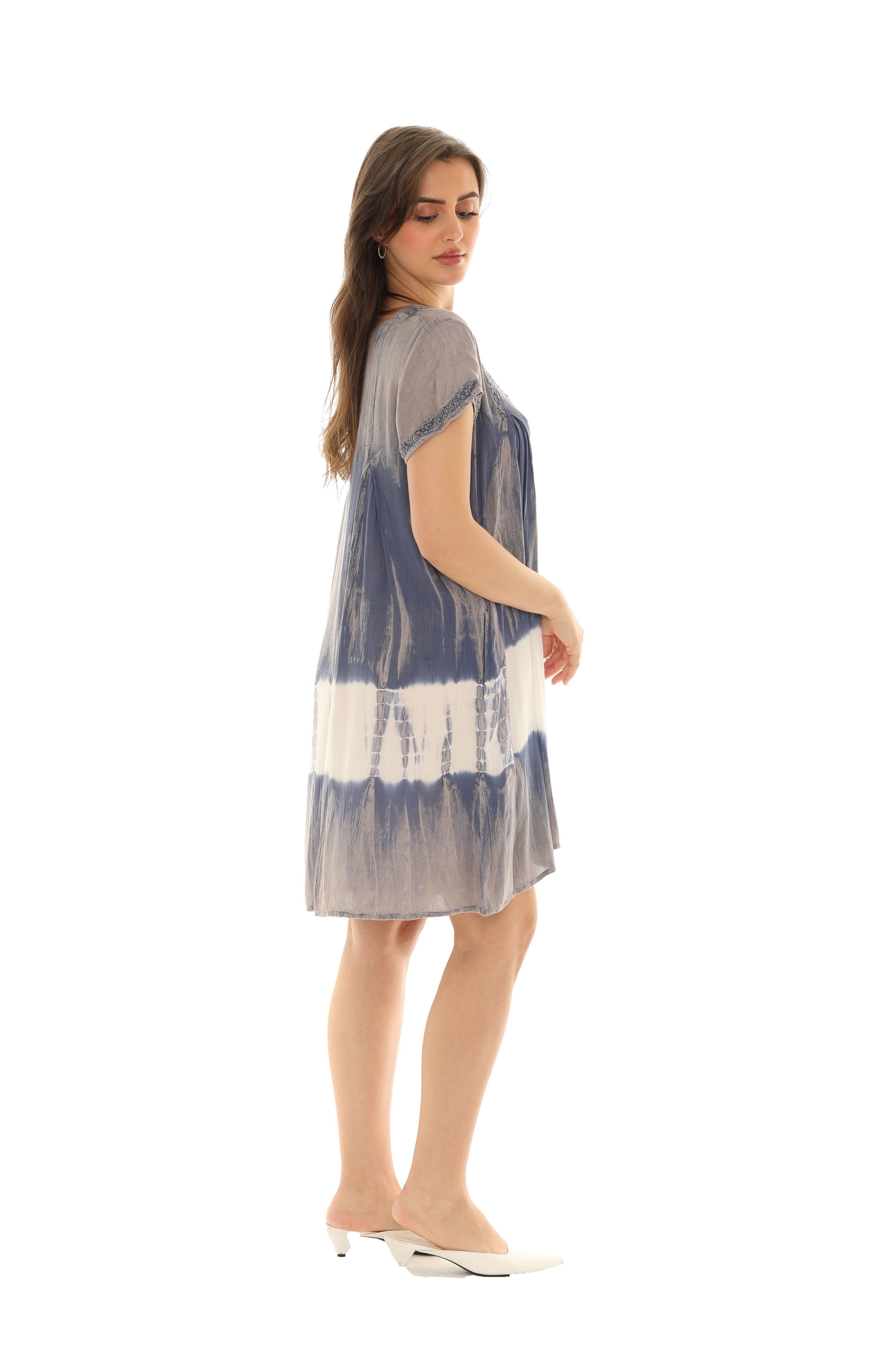 Dual-Tone Rayon Tie Dye Short Sleeve Dress
