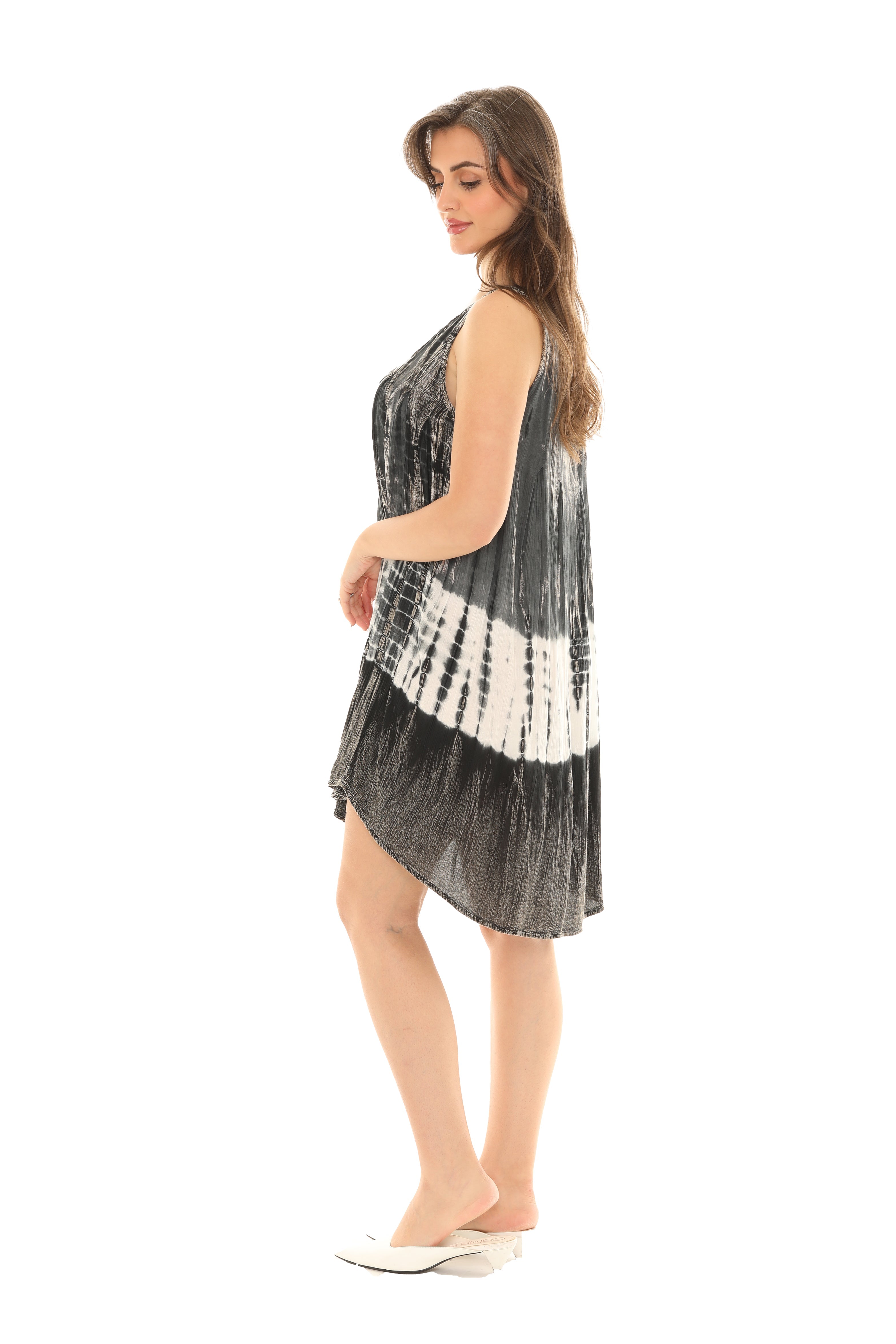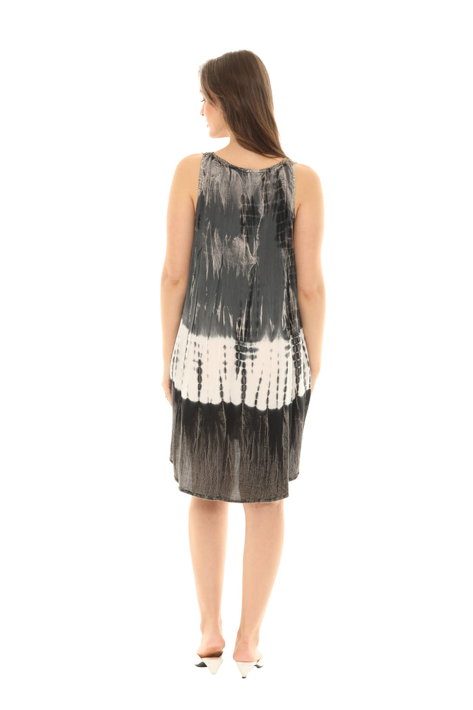 Dual-Tone Rayon Tie Dye Sleeveless Dress