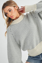 This soft pullover Echo sweater, crafted from a knit fabric, features an oversized fit with a chunky ribbed neckline and raglan sleeves. Its slouchy, oversized design includes ribbed trim, a chunky mock neckline, slouchy raglan sleeves with exaggerated cuffs, and a banded bottom hem. Elevate your knitwear collection with this versatile pullover, perfect for layering up or down.