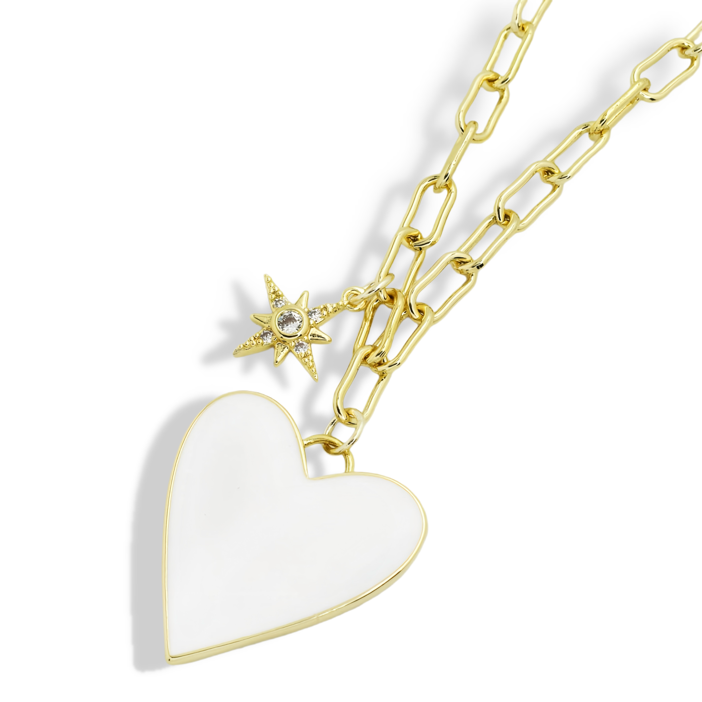 Enamel Heart/Star Necklace White J2