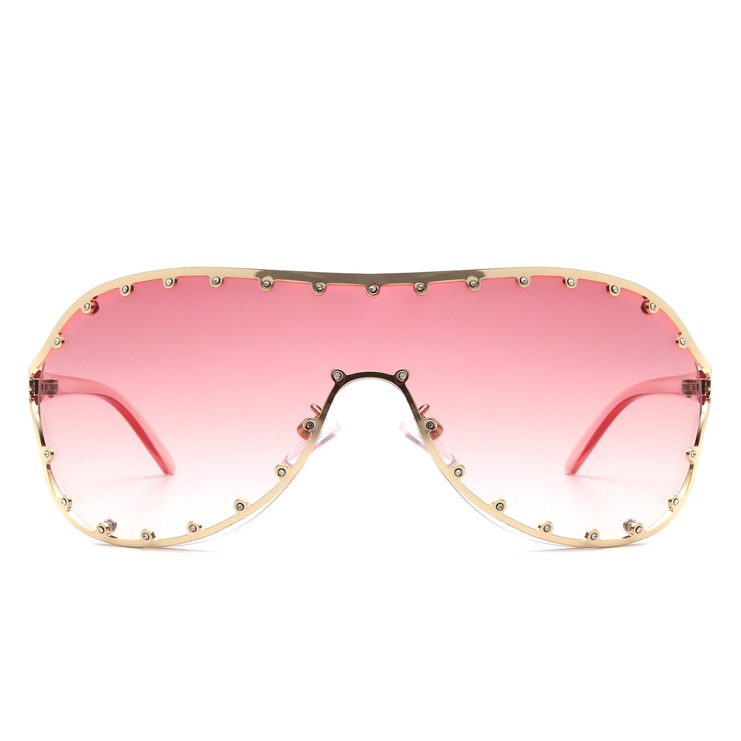 Evanesce - Oversize Rhinestone Design Fashion Women Aviator Sunglasses