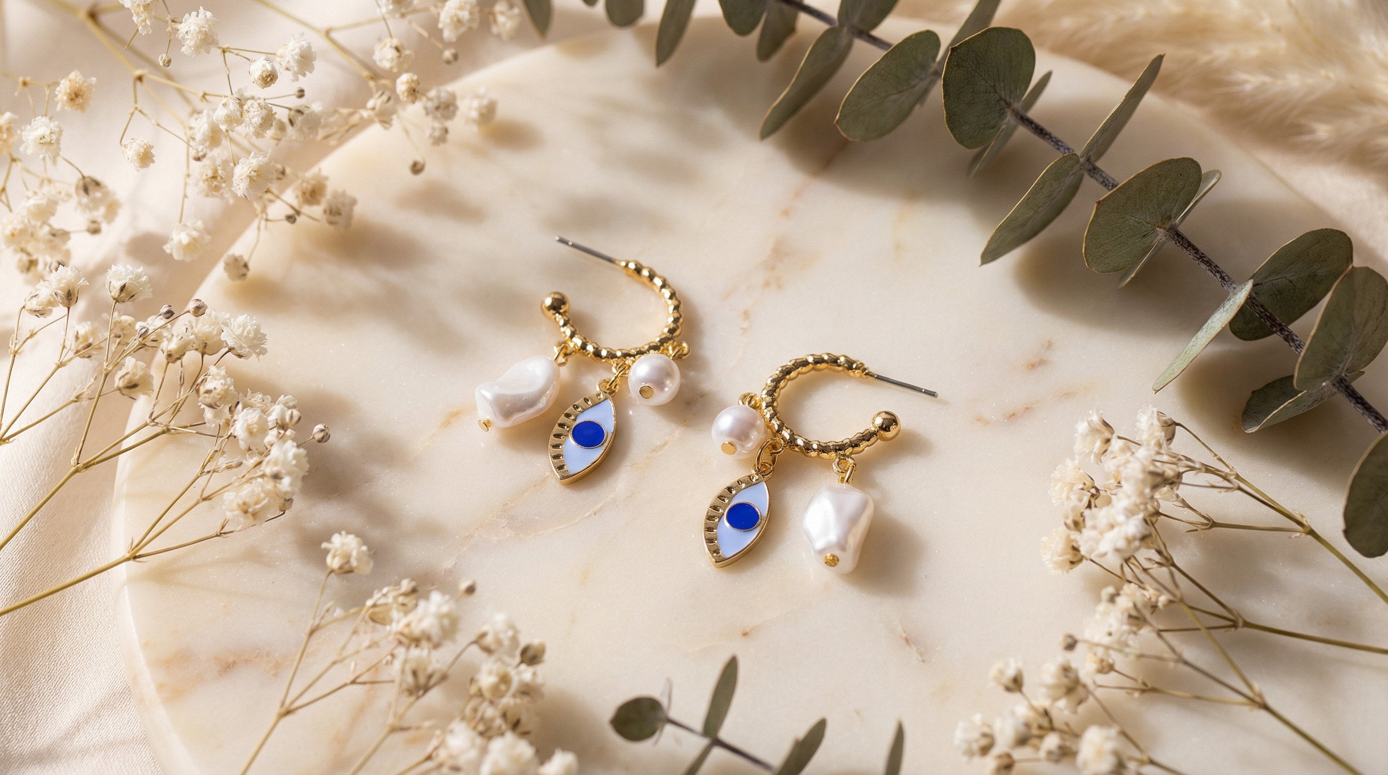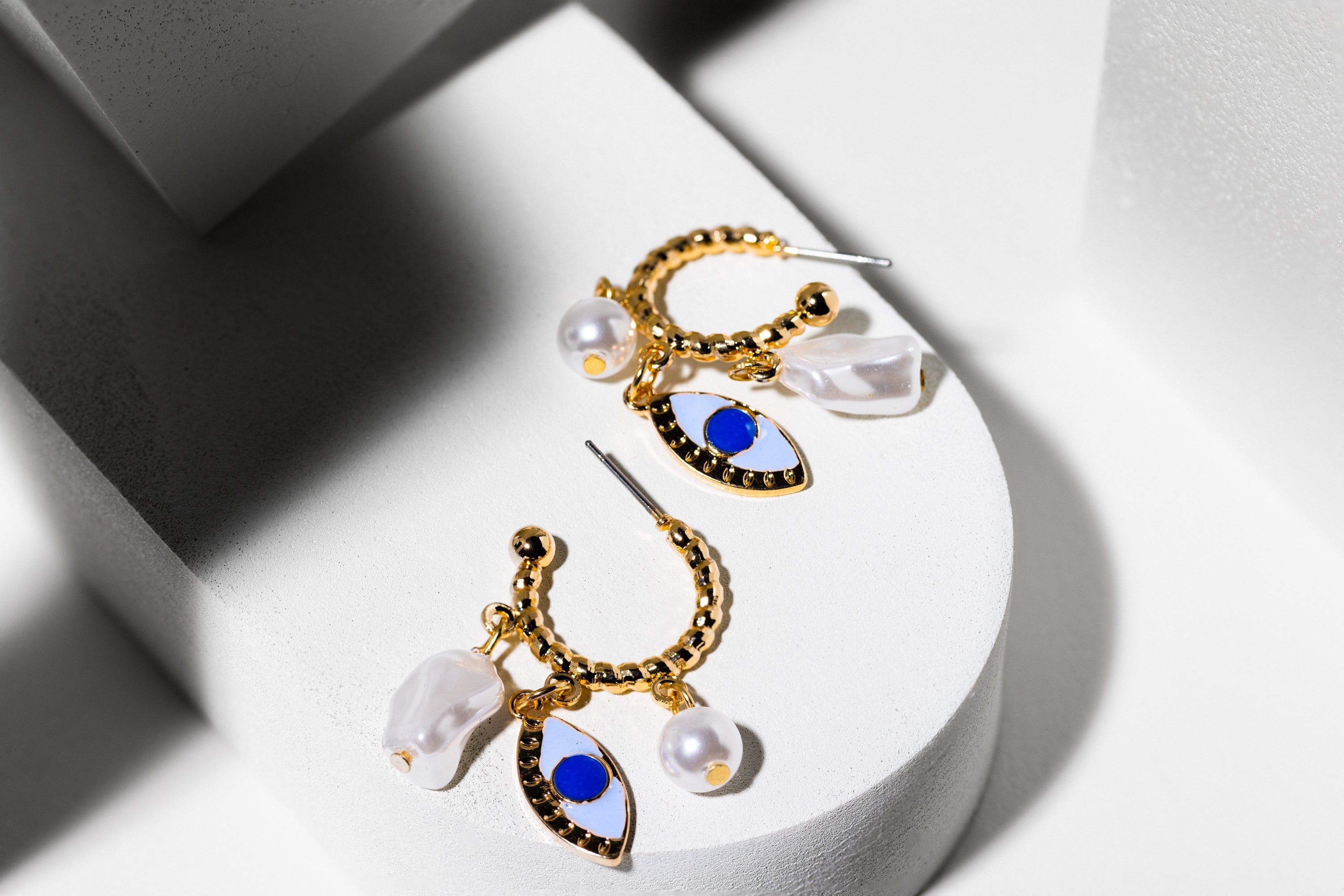 Catch all the good vibes with these Evil Eye Hoop Charm Earrings! Featuring a striking evil eye design that dangles from sleek hoops, these statement earrings blend protective symbolism with modern style. Perfect for adding a touch of mystique and personality to any outfit, whether you're channeling boho-chic energy or making a bold fashion statement. A playful way to keep negativity at bay while looking absolutely fabulous.