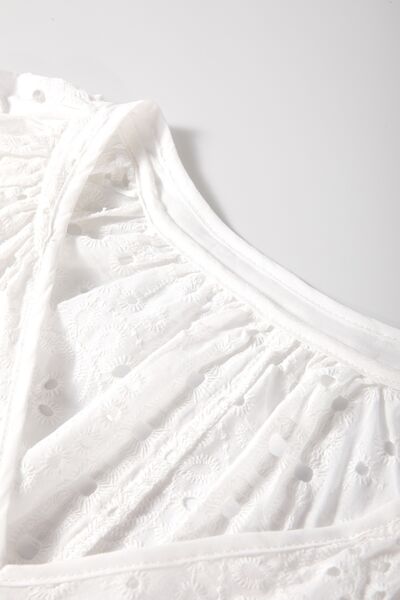 Eyelet V-Neck Long Sleeve Blouse