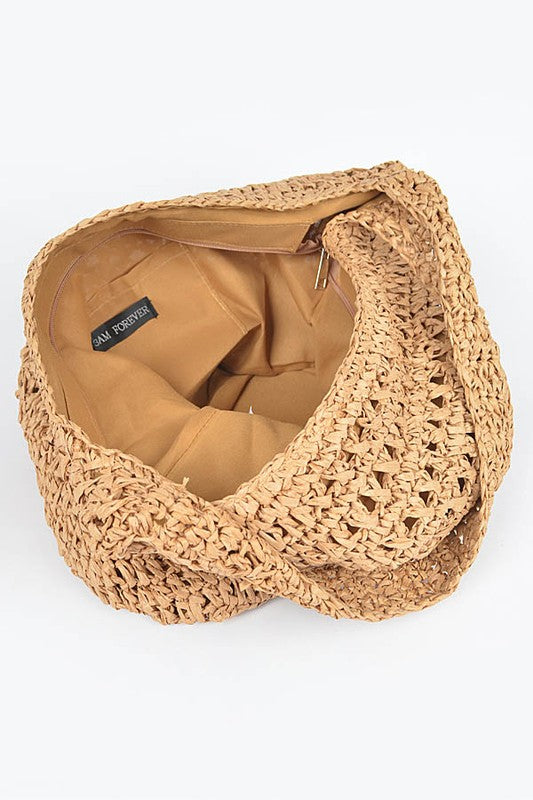 Faux Straw Oversize Hobo Shoulder Bag