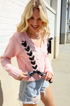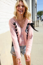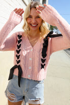 Find Love Pink Bow Detail Button Down Chunky Sweater Cardigan
