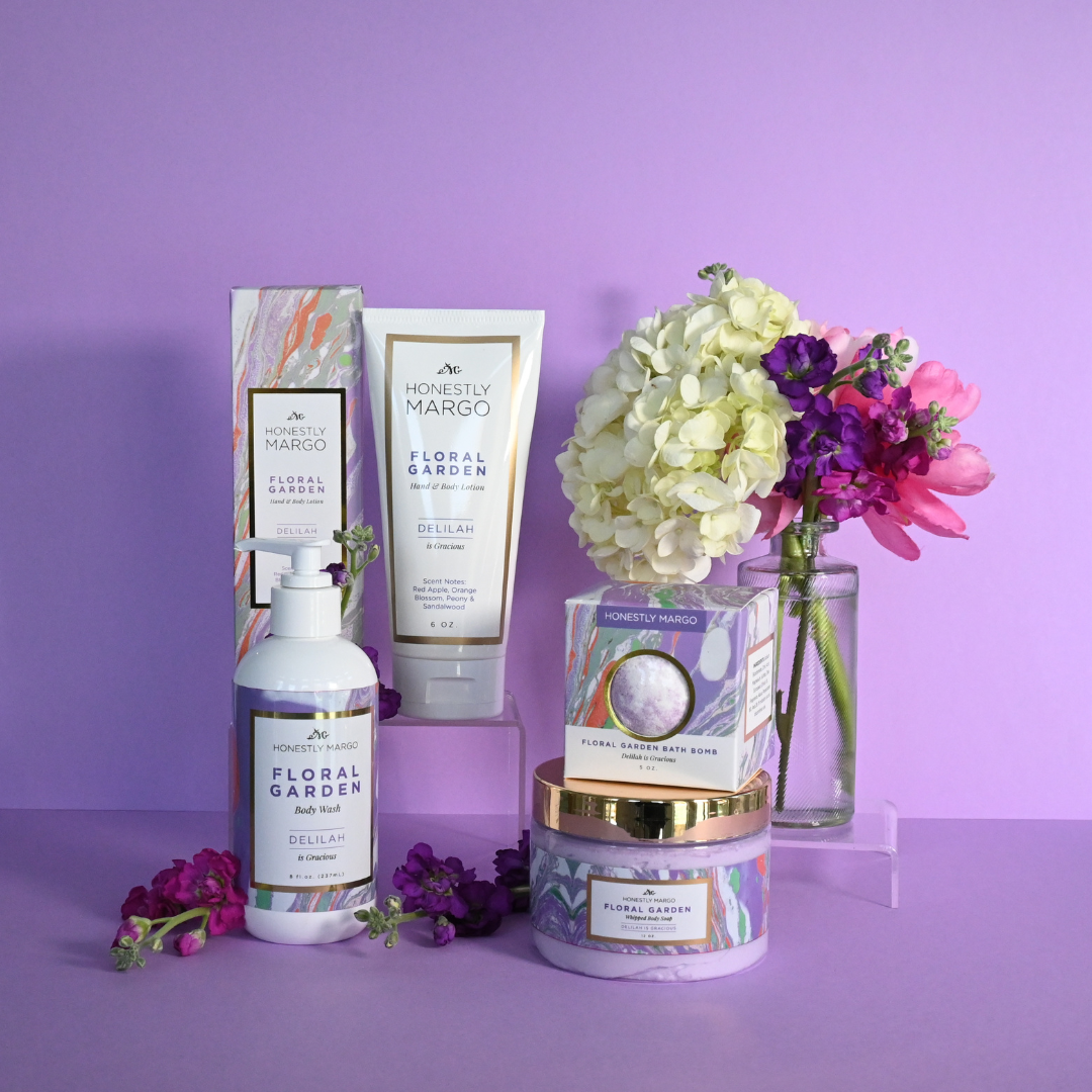 For the shower, use our Delilah Body Wash and Delilah Whipped Body Soap.