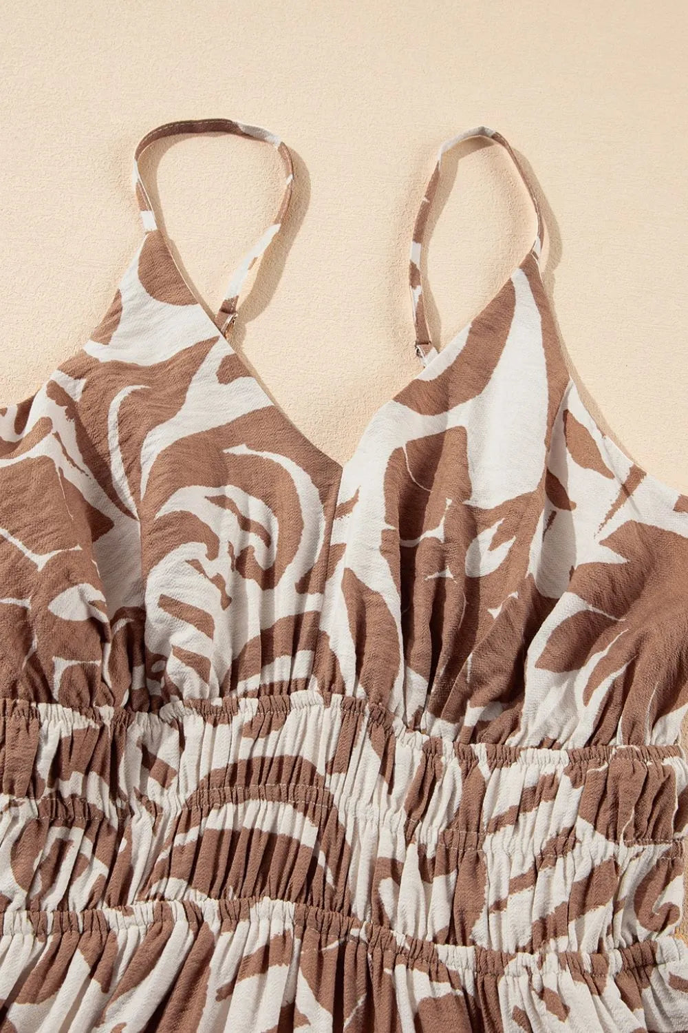 Floral Shirred High Waist Spaghetti Straps Dress